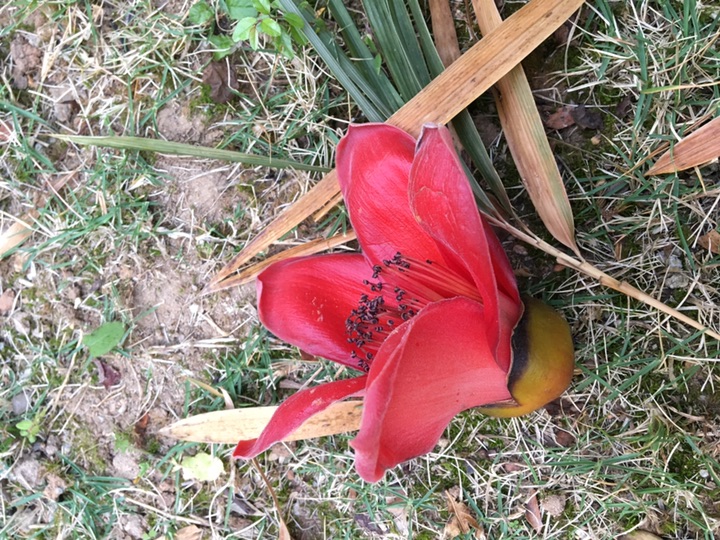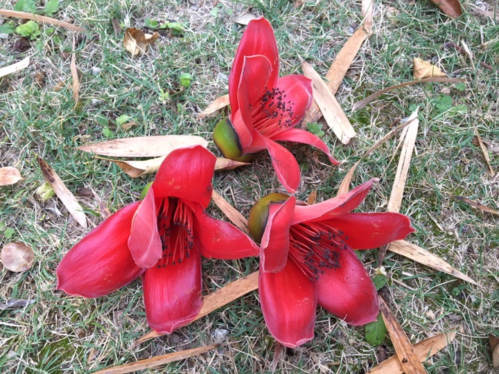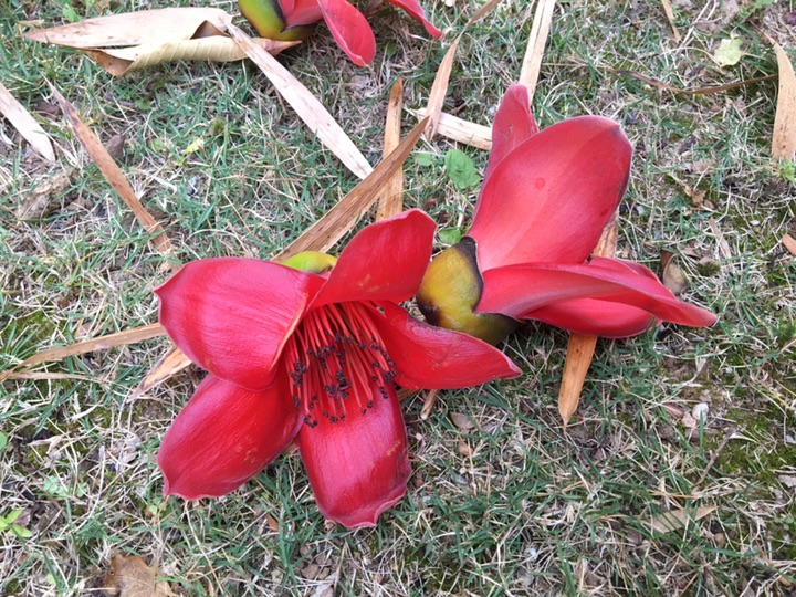去年在深圳第一次正式见到了木棉花,看着那锥形的花体和下面的花托,我总觉得它像羽毛球,难道是我经常打羽毛球的缘故吗?😀
