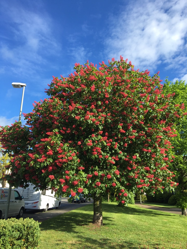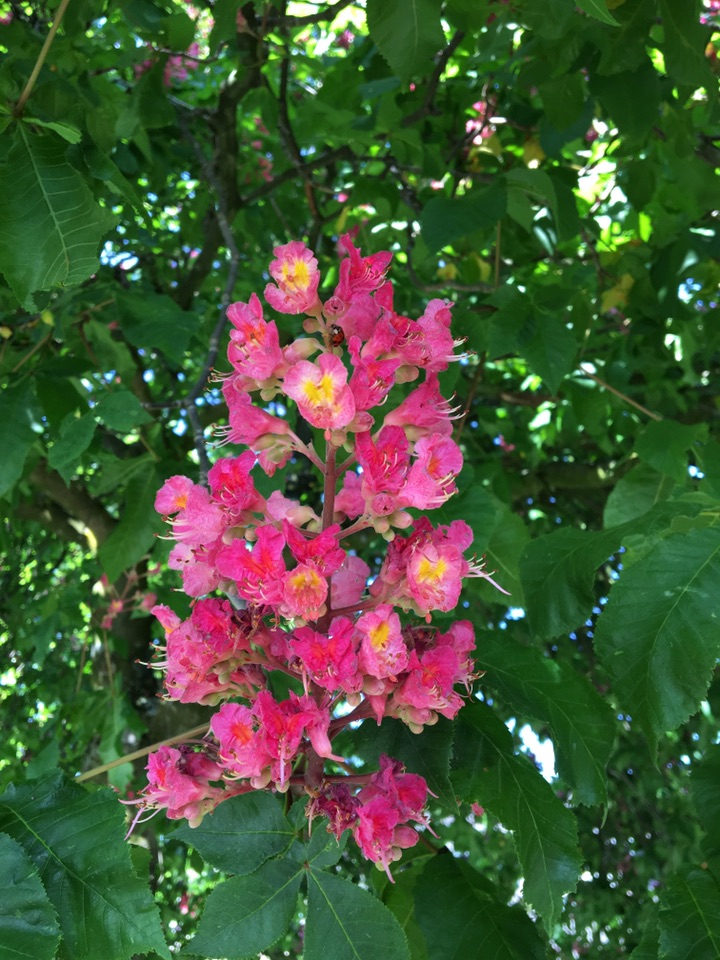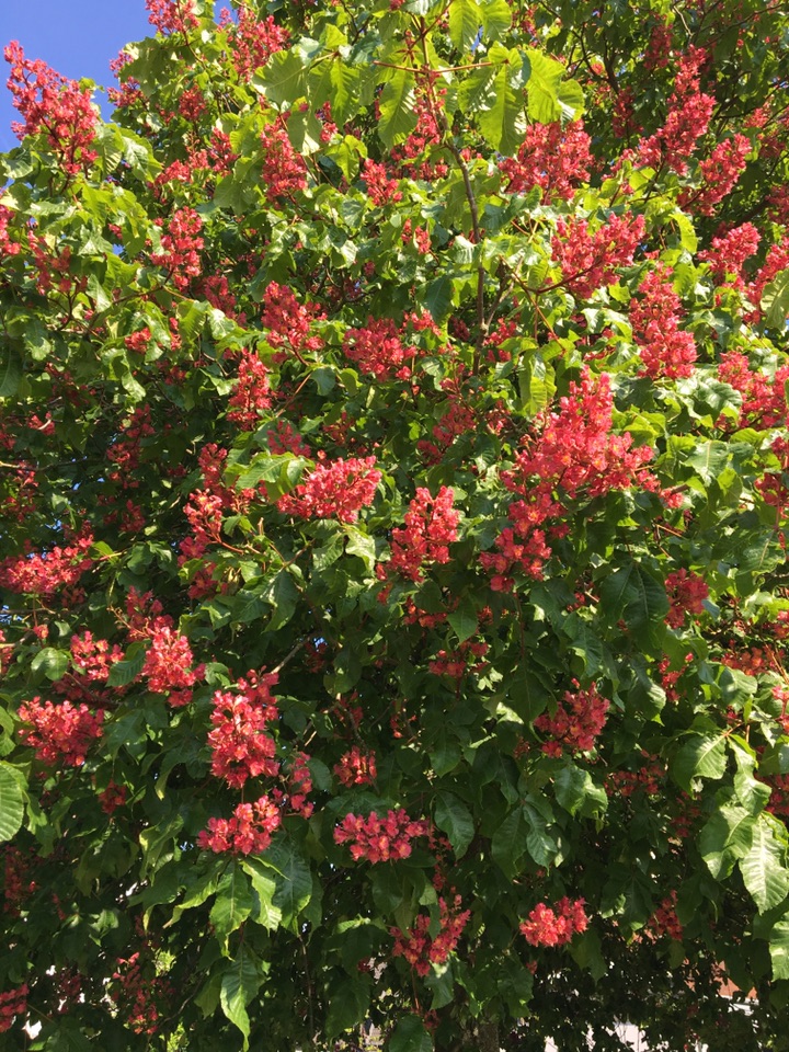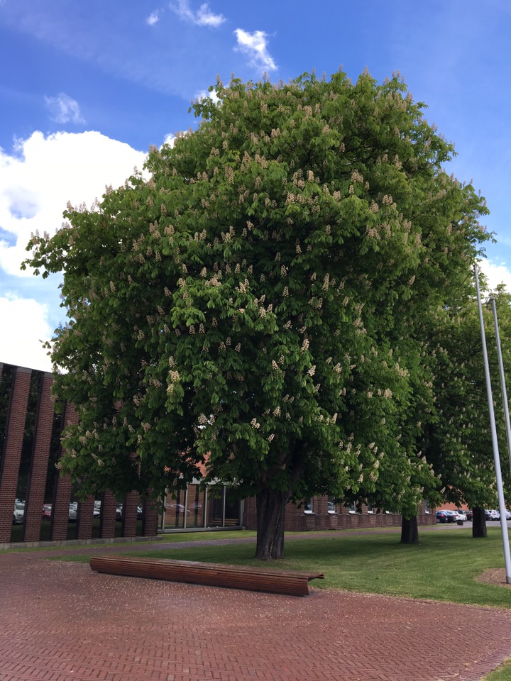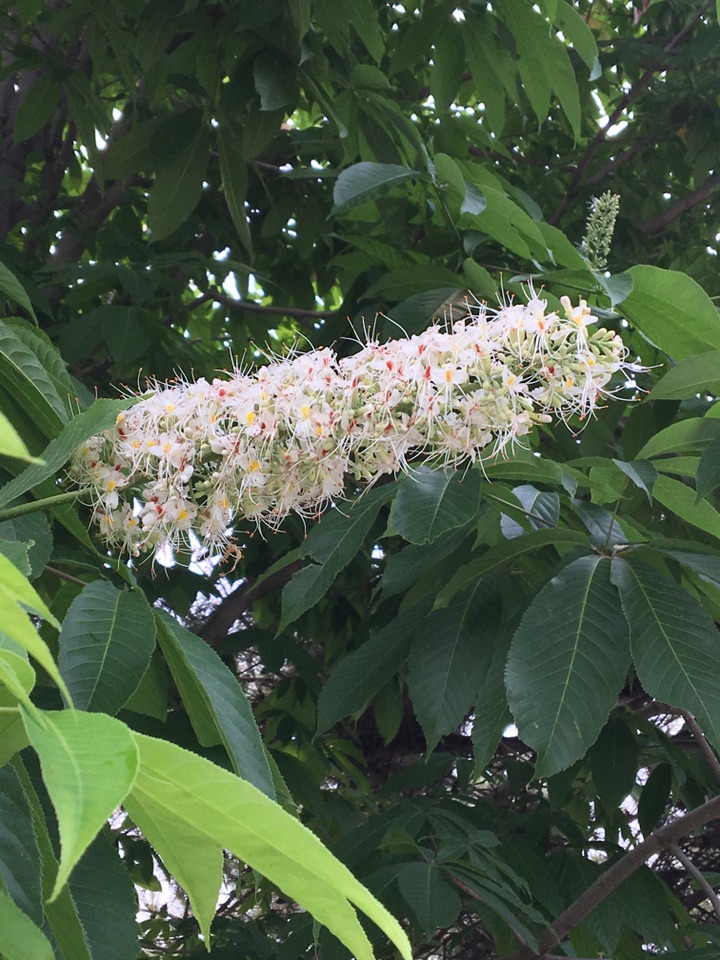 七叶树又名马栗,著名景观树,树木高,花簇大,叶子七片聚在一起,其果如栗。