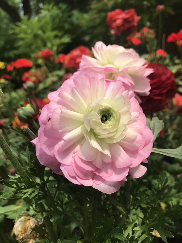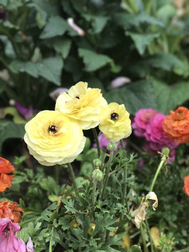 花毛茛(gèn),别名芹菜花,陆莲花,为毛茛科、花毛茛属多年生草本花卉。花色丰富,多为重瓣或半重瓣,花型似牡丹花,但较小,花直径一般为8cm~1ocm;叶似芹菜的叶,故常被称为芹菜花。原产于欧洲东南部和亚洲西南部。