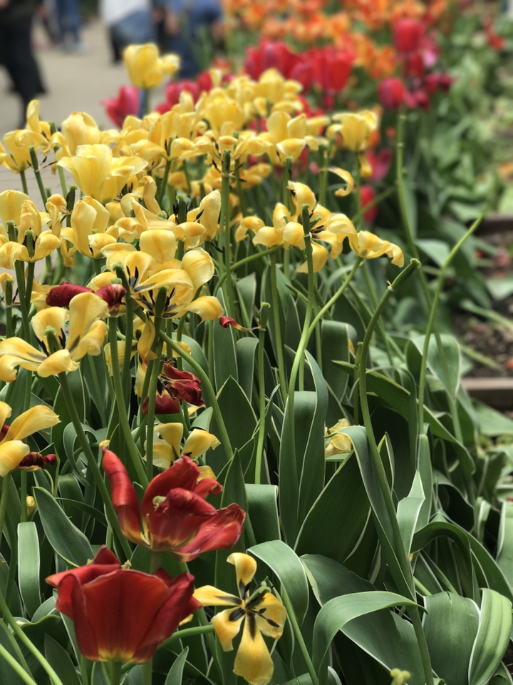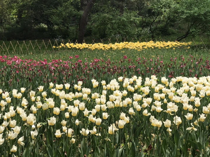 在北京,除了植物园、中山公园可以观赏到大片郁金香外,景山公园的郁金香也是美的妖艳动人。趁着赏牡丹之际,也一并把郁金香一看再看。据介绍公园内能观赏到7种花色、30个品种共计30000余株郁金香,我还是去晚了点,很多都只剩下光杆司令一个了。花色还是颇丰,盛开的花儿也美。诚邀大家一块儿来欣赏吧