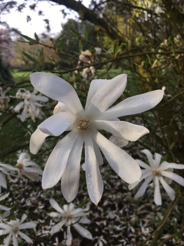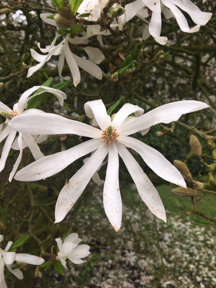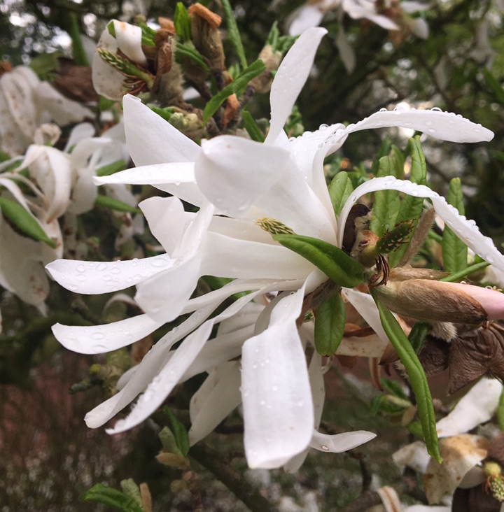 星花玉兰,长长花瓣似长袖,曼妙飘洒似飞天,撒向人间都是福。
