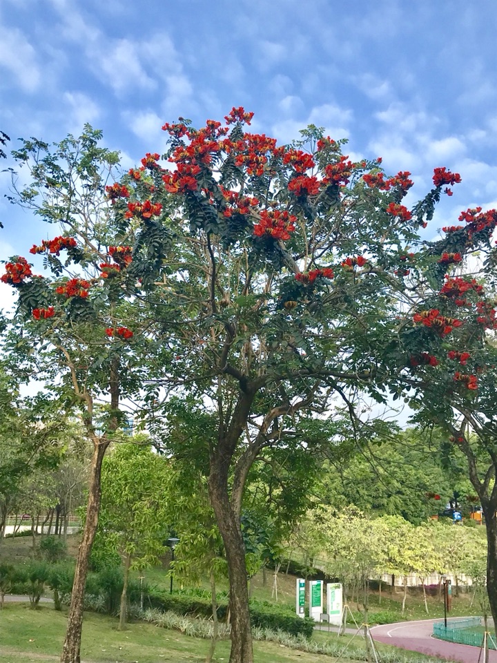 火焰树,爪爪裂开,火焰就窜出來了,天边定格的火焰,今年已是二度燃烧。火焰树,紫葳科,火焰树属