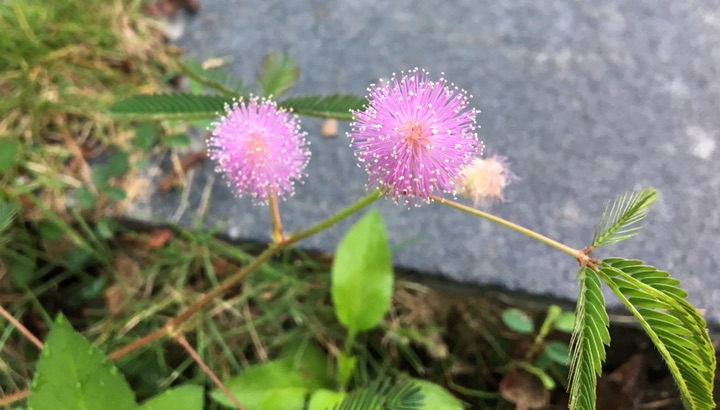 在深圳拍了一张粉色的漂亮花发在朋友圈,有朋友告诉我那就是含羞草,错过了试试叶子收缩反应的机会,遗憾。