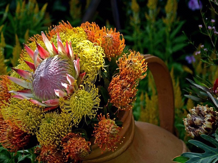 海神花属,属名Protea是以希腊神话中海神普罗透斯(Proteus)的名字命名的,海神普罗透斯具有可以随意变换外形的神力,用来形容海神花属植物多变的外观。