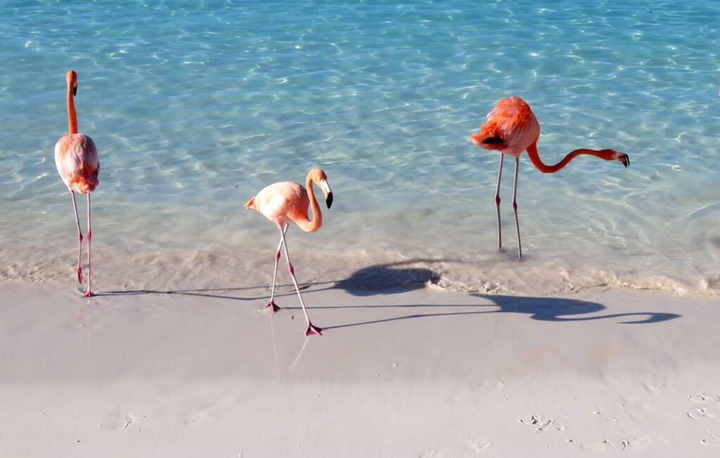 阿鲁巴一个位于加勒比海地区的岛屿,这里温热带盐湖水滨,栖息着美丽的火烈鸟。