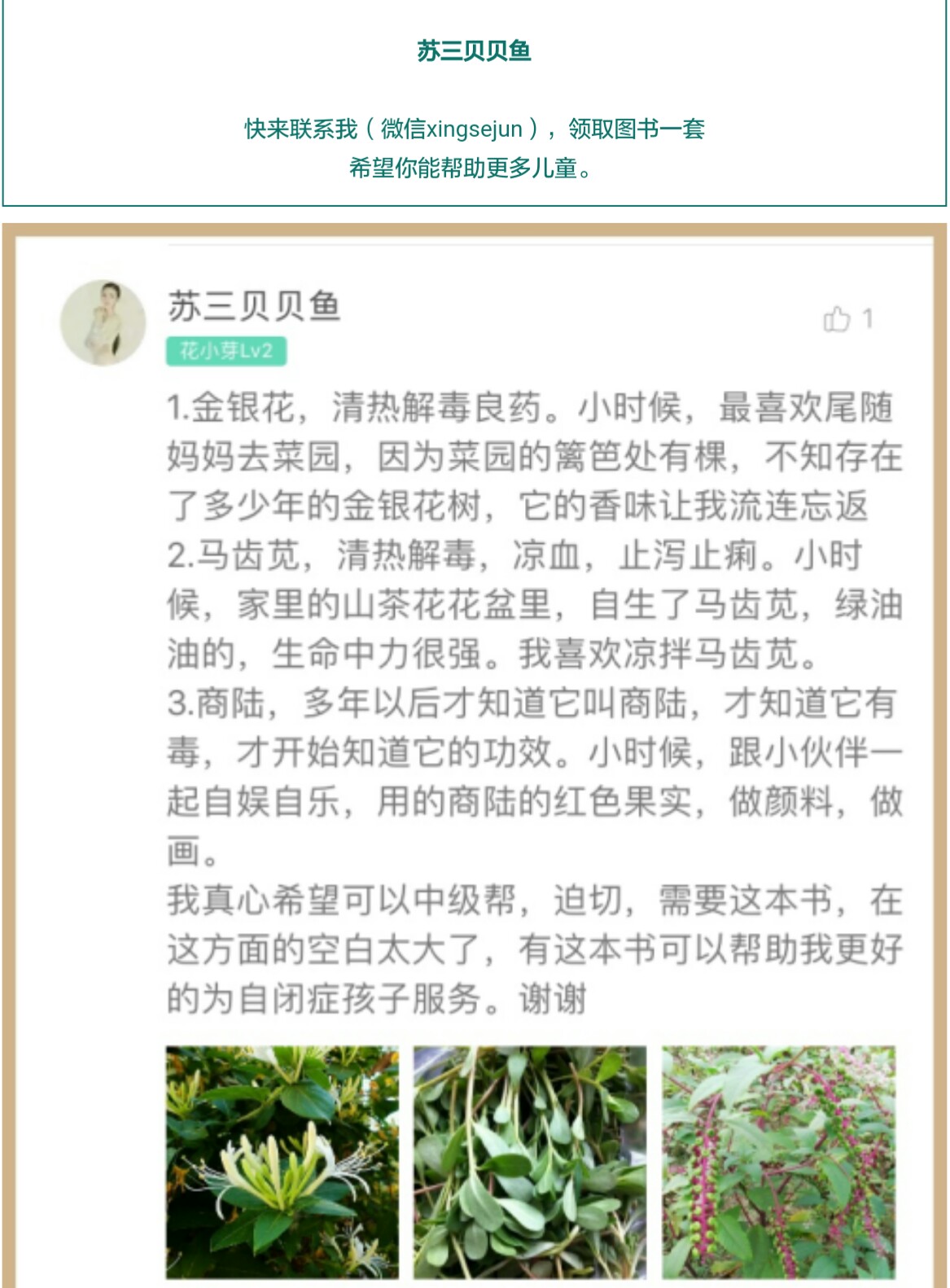 希望今后与形色、与《杂草记》共同进步,也希望我的小兴趣,可以丰富我们的部分特殊孩子,腹有诗书气自华,只有自己进步了,才值得他人对你温柔以待