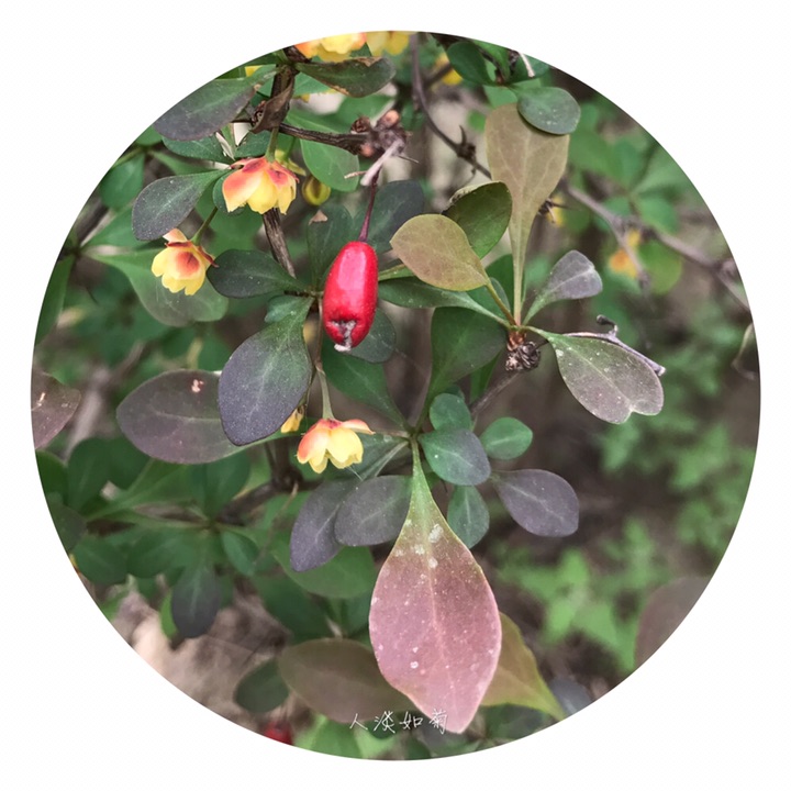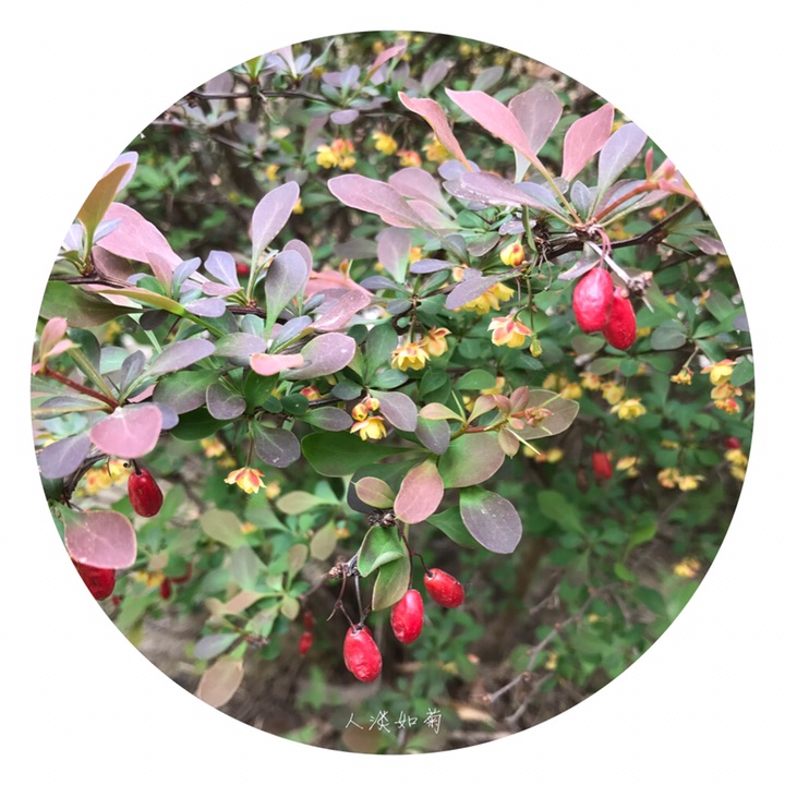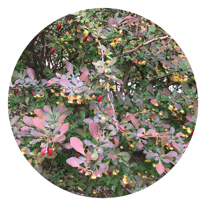 紫叶小檗(学名:Berberis thunbergii var. atropurpurea Chenault),别名:红叶小檗,小檗科、小檗属。原产于中国东北南部、华北及秦岭。多生于海拔1000米左右的林缘或疏林空地。落叶灌木,枝丛生,幼枝紫红色或暗红色,老枝灰棕色或紫褐色。叶小全缘,菱形或倒卵,紫红到鲜红,叶背色稍淡。4月开花,花黄色。果实椭圆形,果熟后艳红美丽。