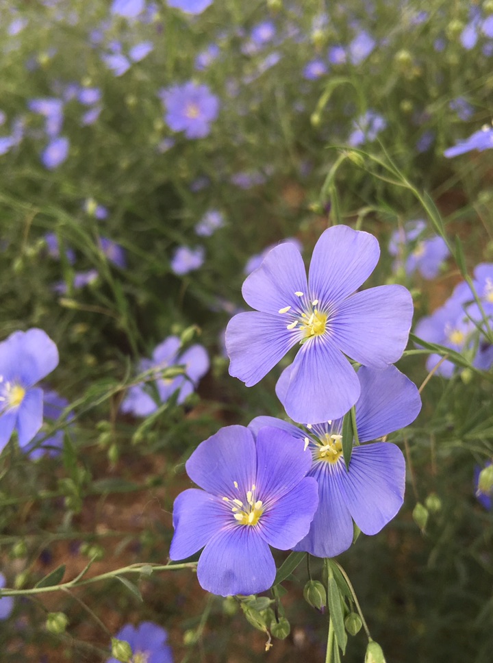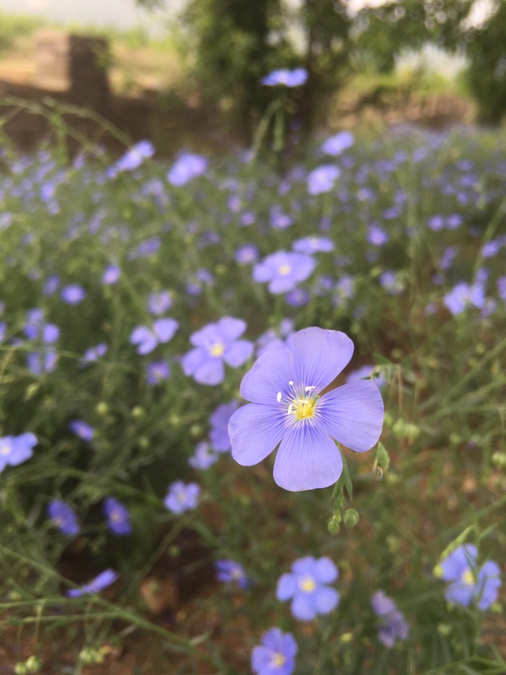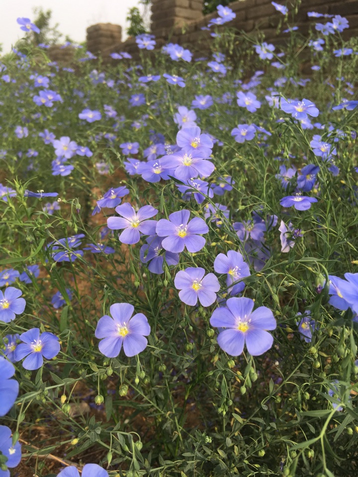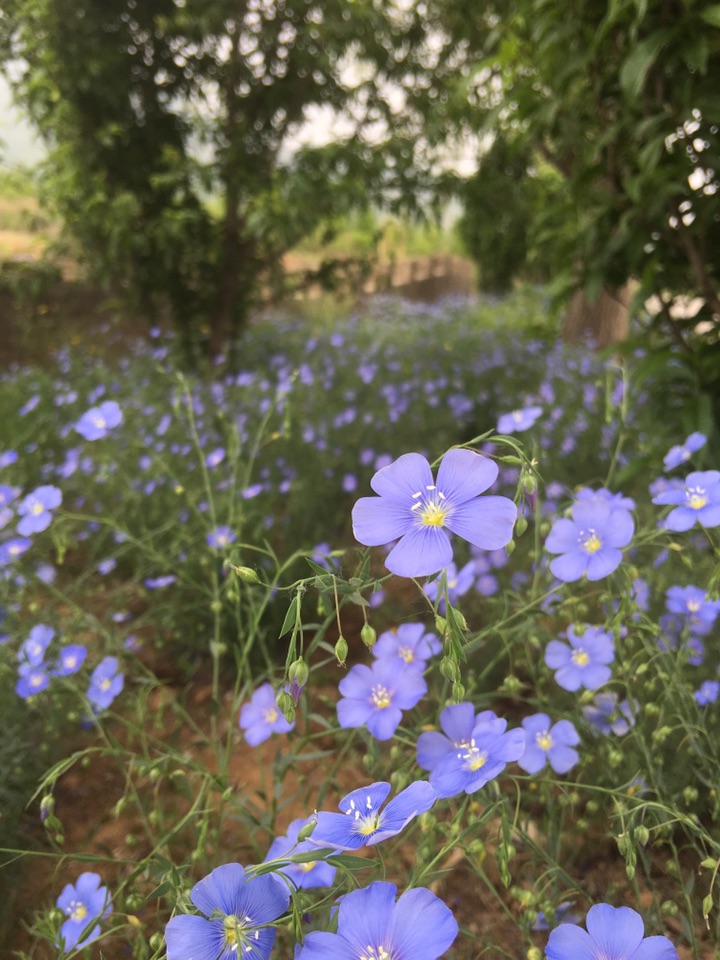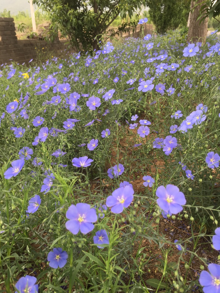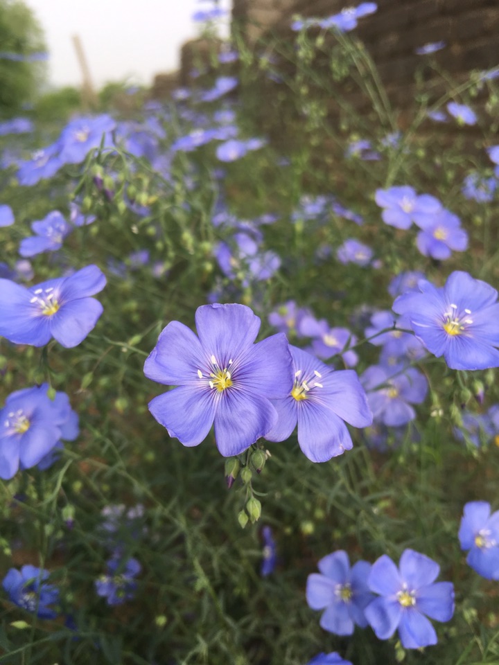 周末郊游,路边偶遇一片亚麻,我也分不清到底是蓝色还是紫色,干脆就说蓝紫吧😊