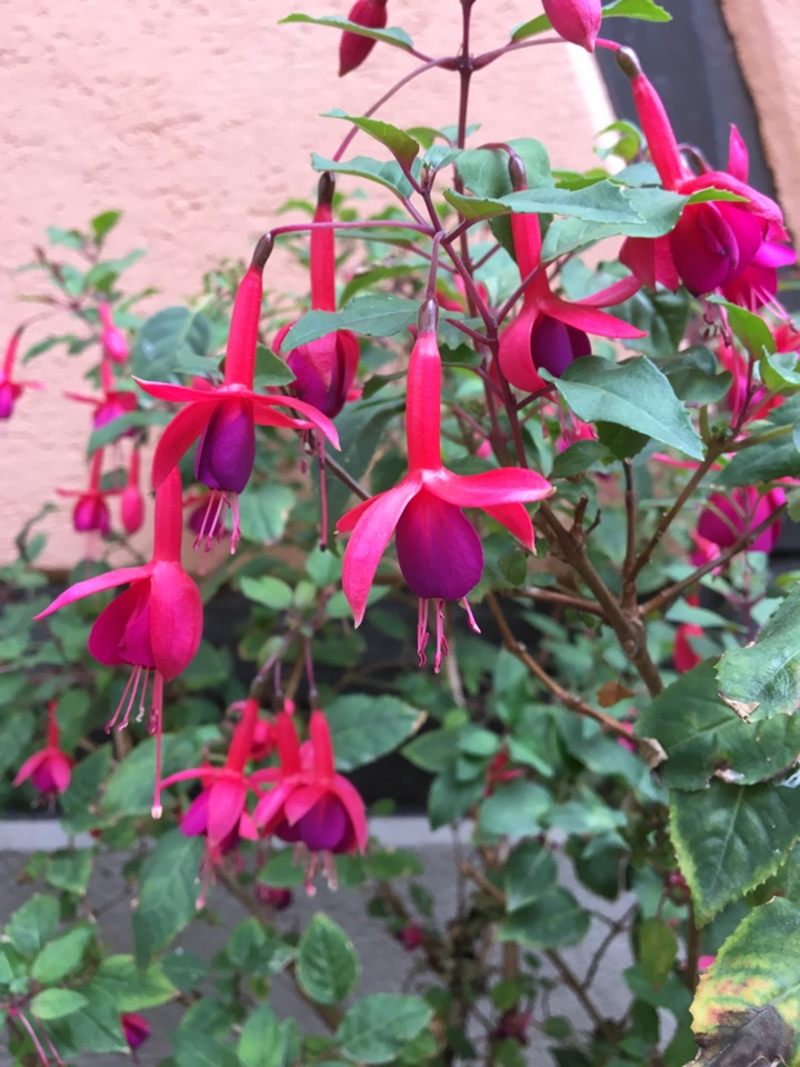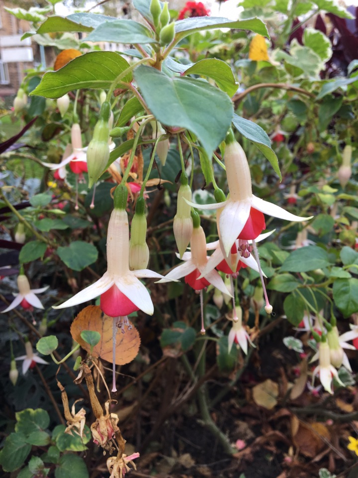 最早见到的倒挂金钟都是红色的,没想到后来又发现了一株白色的,跟红色的相比,少了许多喧闹,显得文雅了。