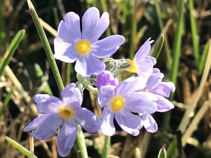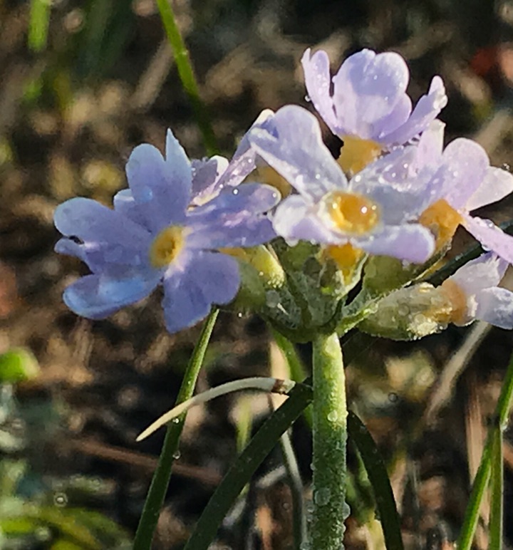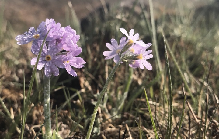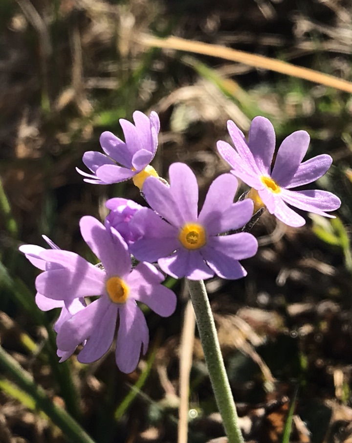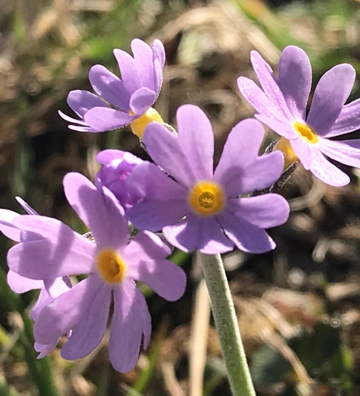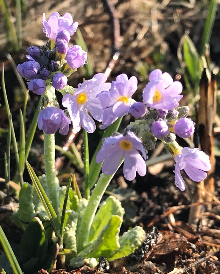 报春花 (Primula malacoides Franch.):报春花科报春花属二年生草本植物,通常被粉,叶簇生,叶片卵形至椭圆形或矩圆形,裂片具不整齐的小牙齿,叶柄被多细胞柔毛。花葶高可达40厘米,伞形花序,苞片线形或线状披针形,花梗纤细,花萼钟状,花冠粉红色,淡蓝紫色或近白色,蒴果球形,2-5月开花,3-6月结果。多生长于荒野、田边,潮湿旷地、沟边和林缘,该种广泛栽培于世界各地,并有许多园艺品种,报春花早春开花, 花色丰富,花期长,具有很高的观赏价值。