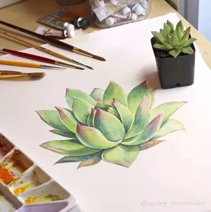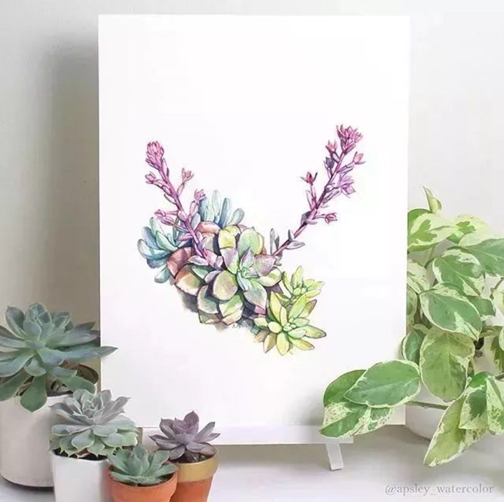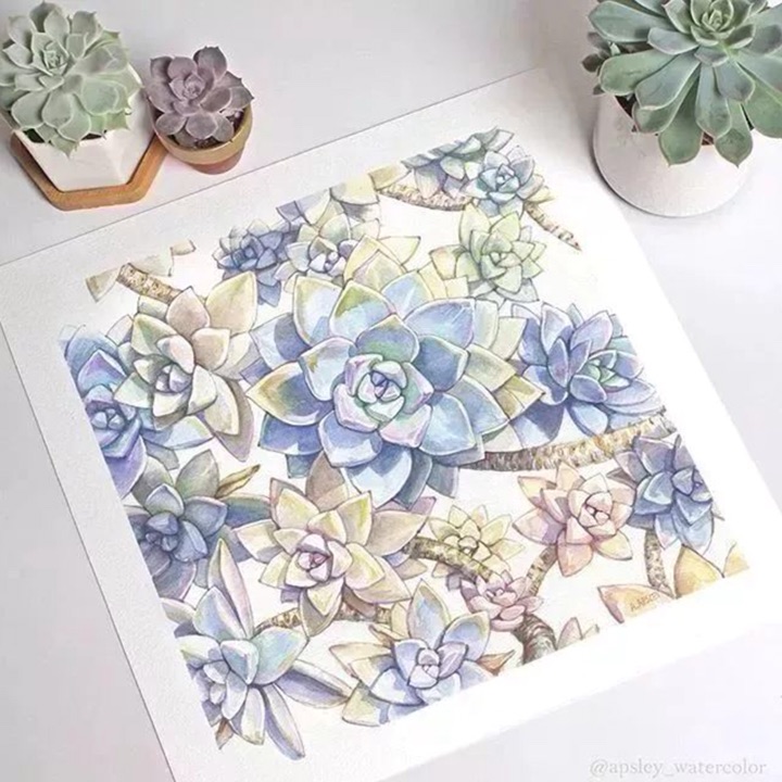 多肉植物大多外观小巧,极其可爱,深受他的喜爱,他喜欢用画笔记录它们的成长,用绘画的方式给予了多肉另一种美好。