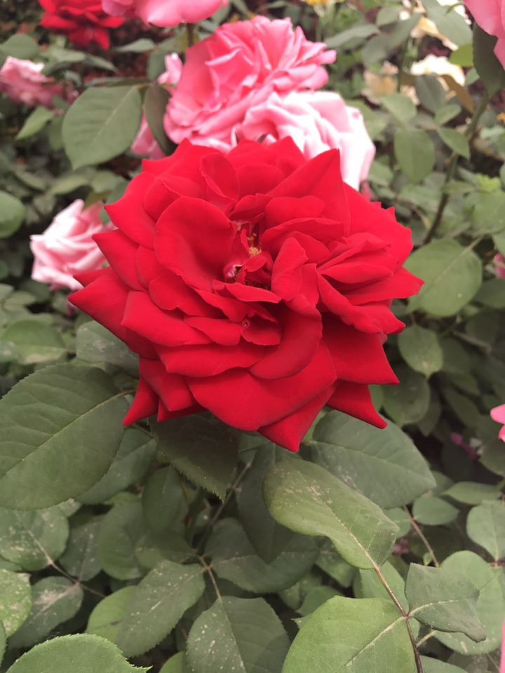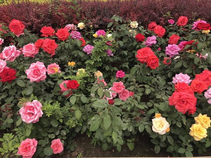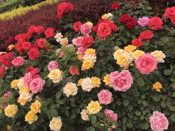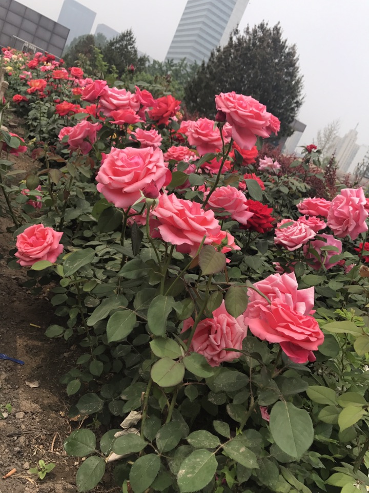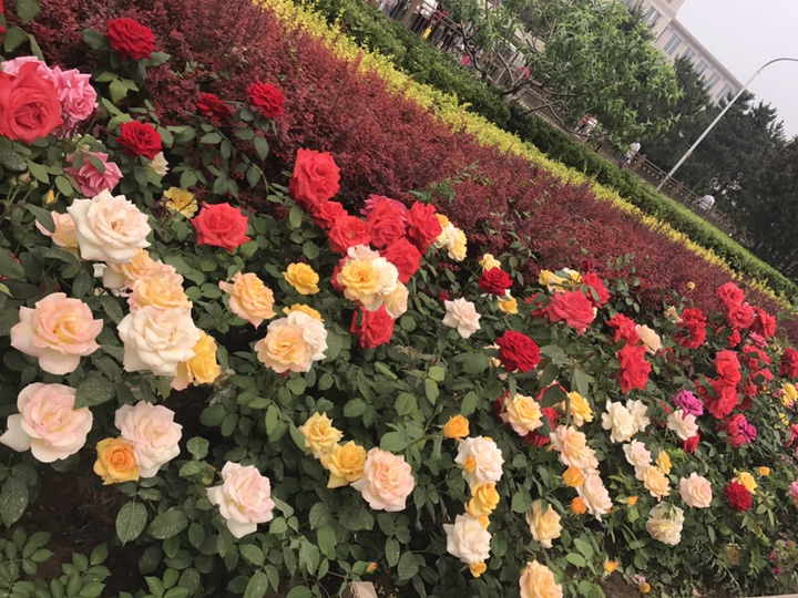 才刚下车就看到两边的月季开的红艳喜庆,热闹非凡。月季这植物也是勤快的很,一旦开花,花期便是绵延无绝期,扮靓大半年的城市,各种场地,各种颜色,各种花型!姿色优美,味道浓郁,沁人心脾!