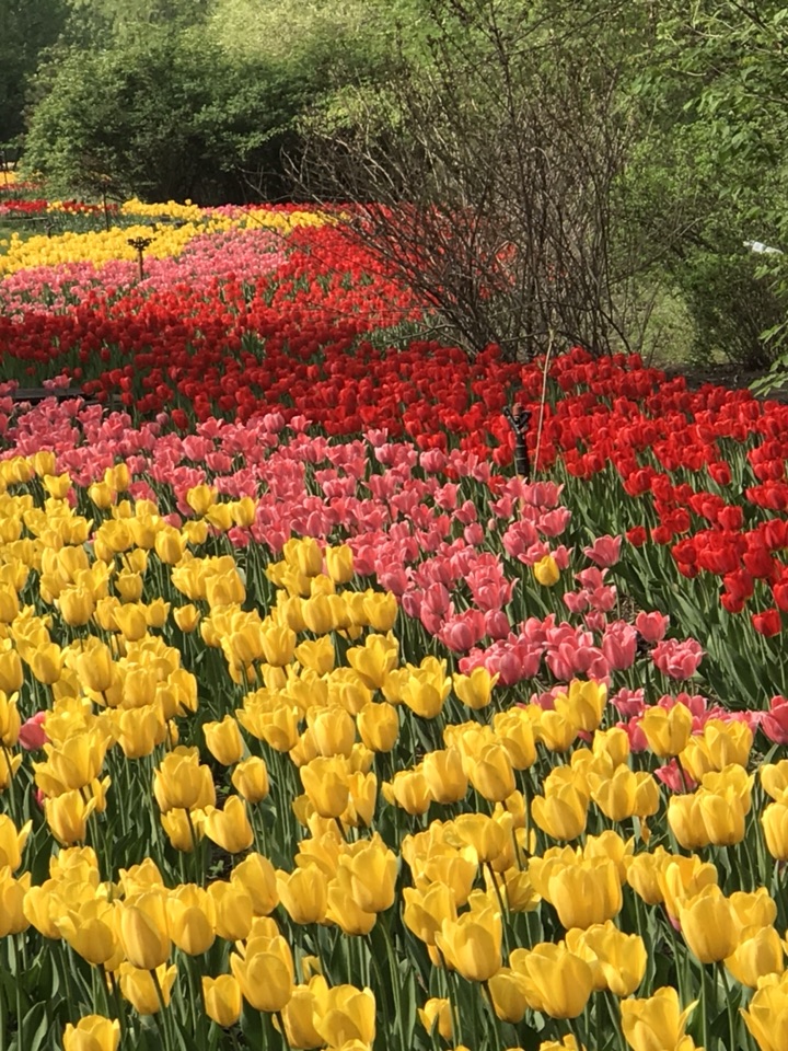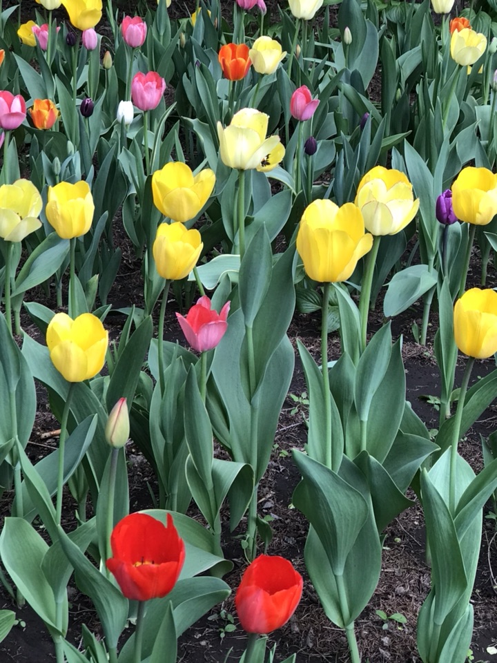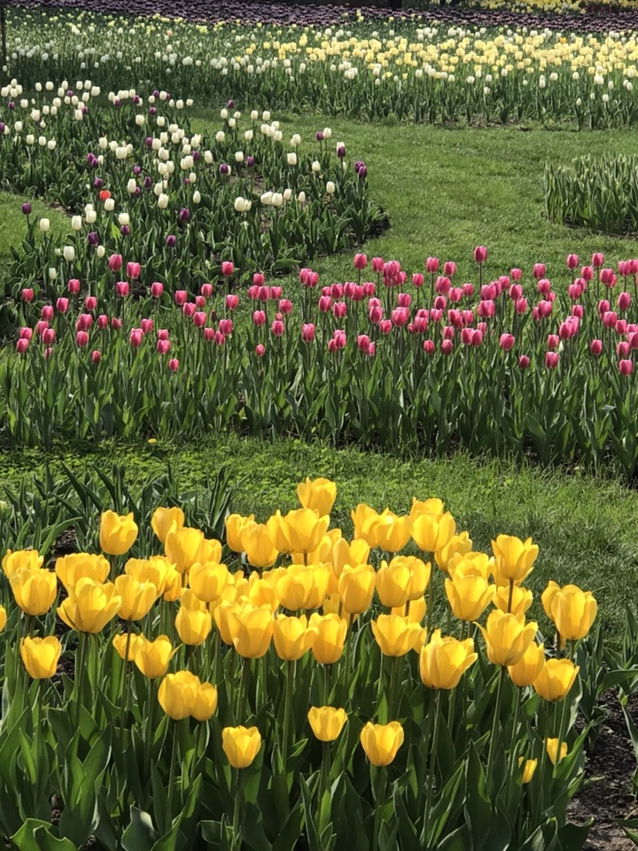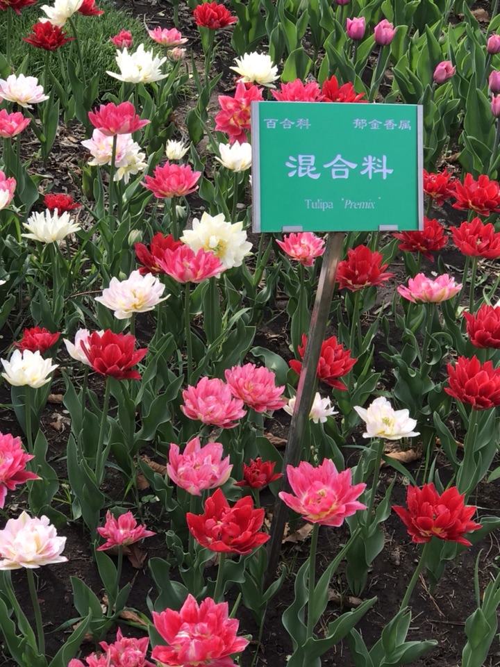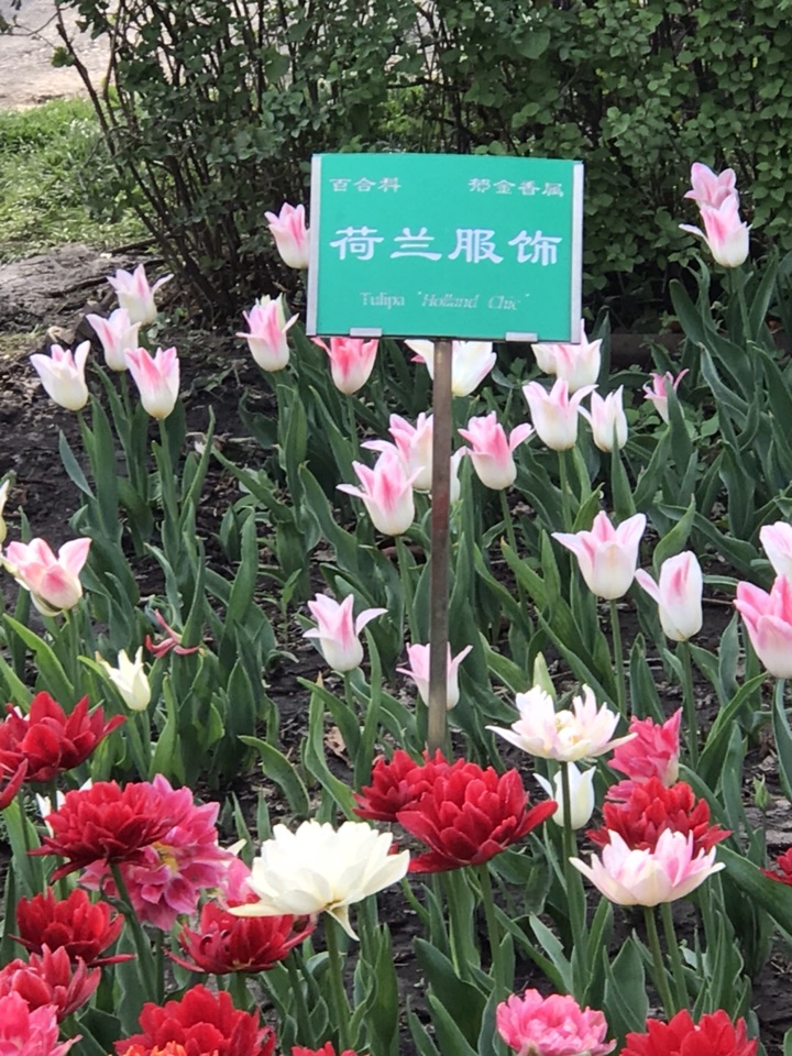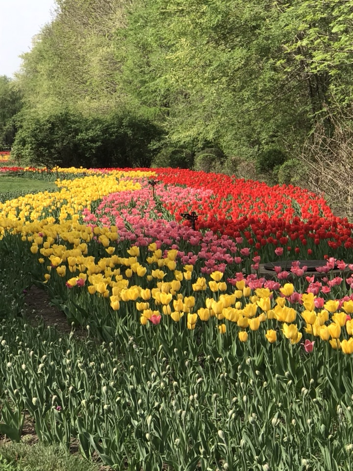 金黄、淡紫、浅粉与洁白,各色的郁金香争奇斗艳