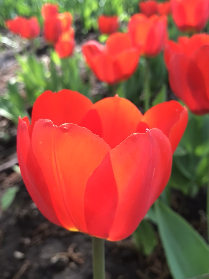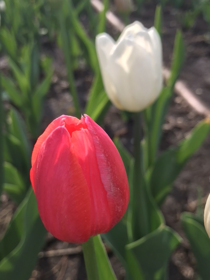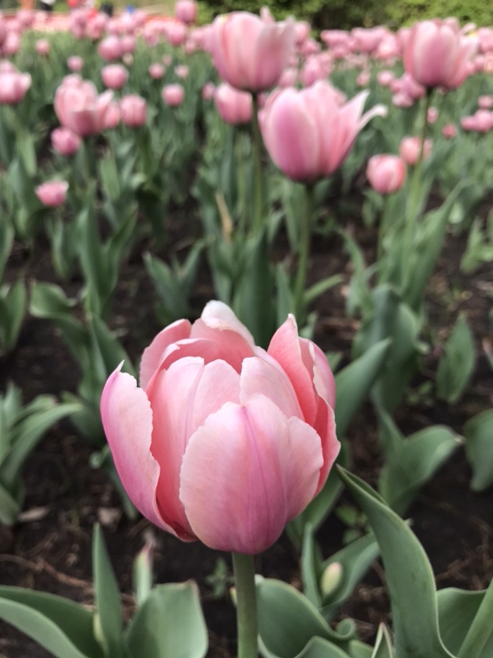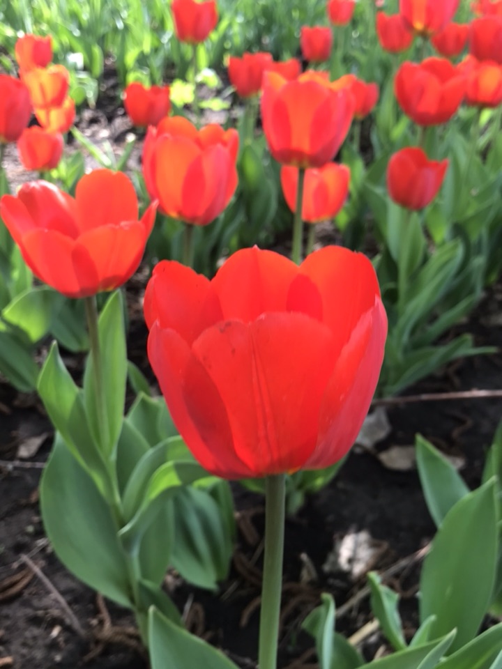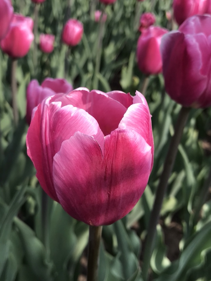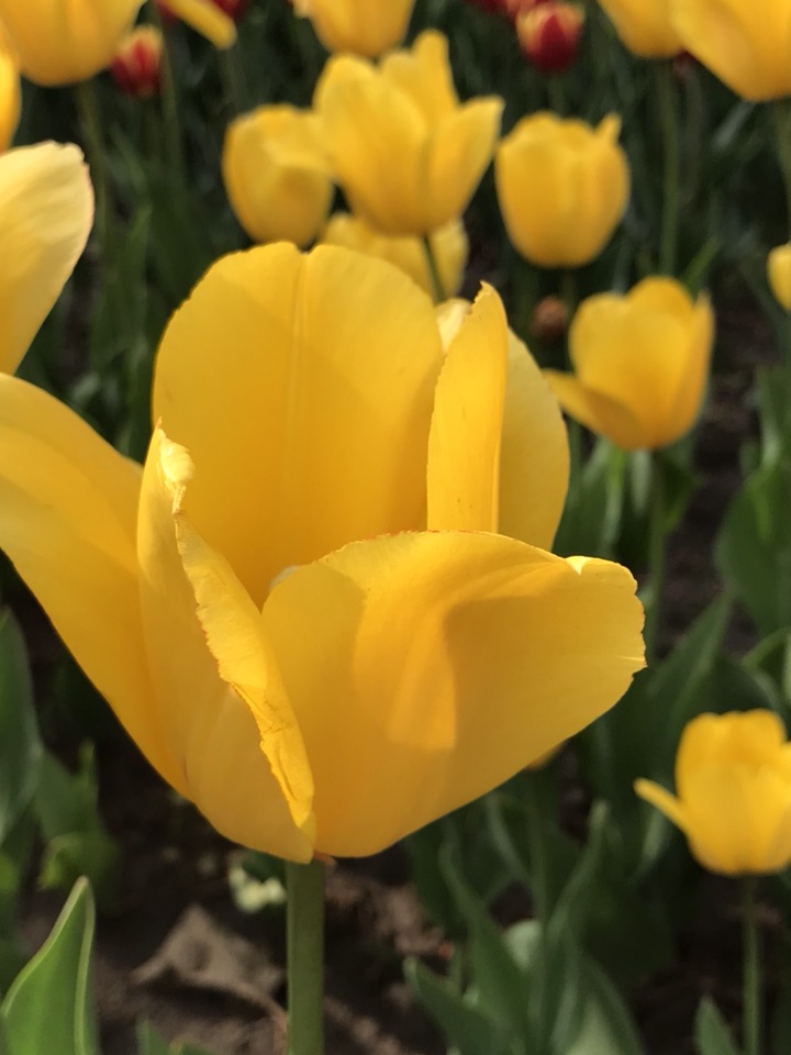 金黄、淡紫、浅粉与洁白,各色的郁金香争奇斗艳