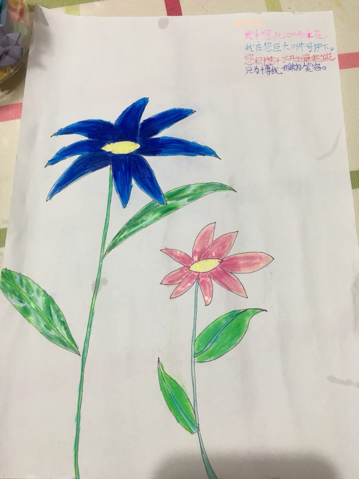 这两朵自创的母女花有点丑……不过妈妈很喜欢!她说,大花罩着小花,很有意义呢!