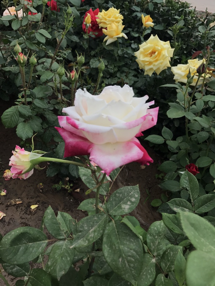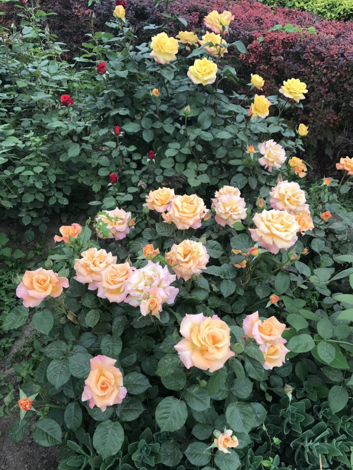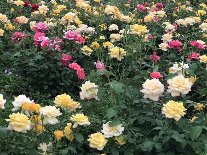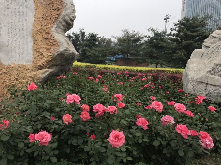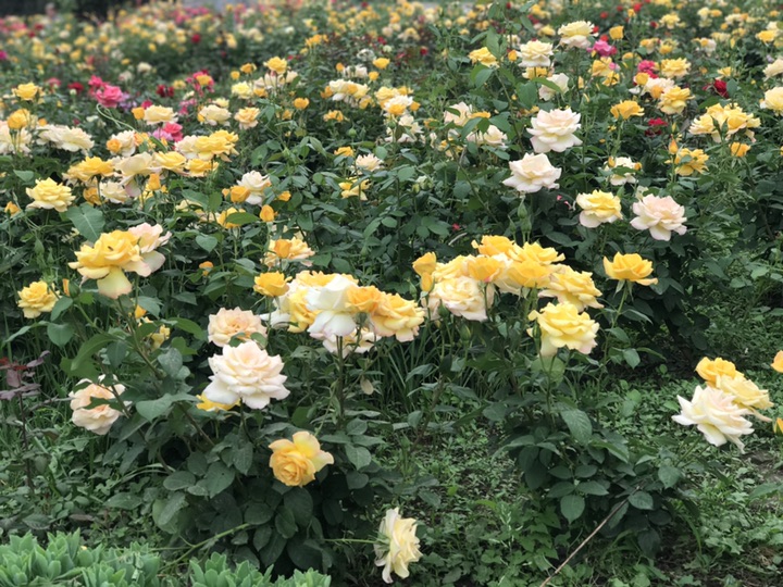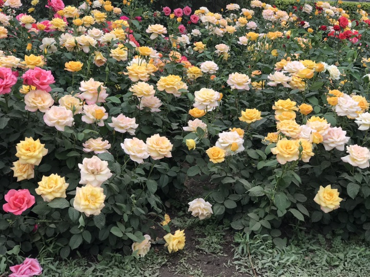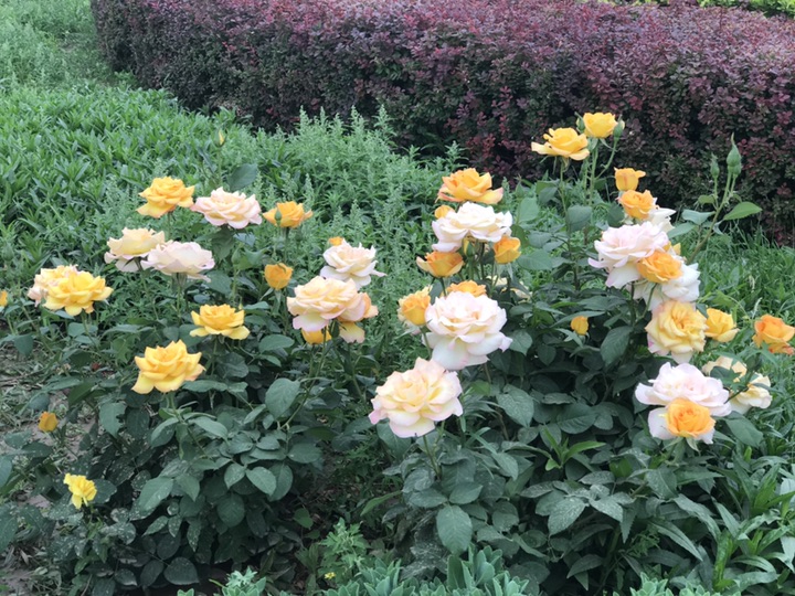 如果你是从公园北区南门进入的话,那么首先迎接你的便是这一大片视野开阔的月季花海,花型硕大,花色浓艳,幽香袭人。由于之前拍照耗电太多,到了这里也就只能简单的拍两张,聊以慰藉了