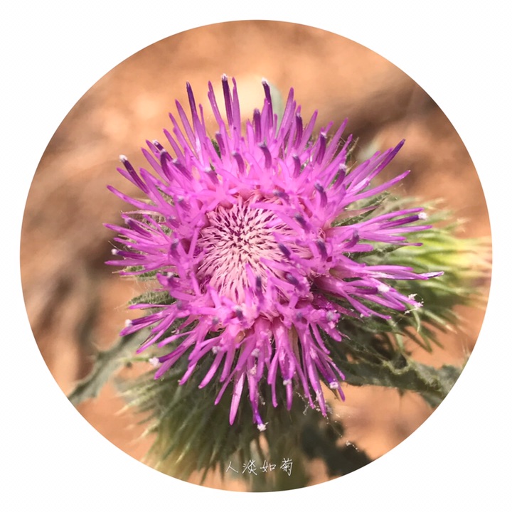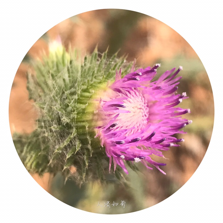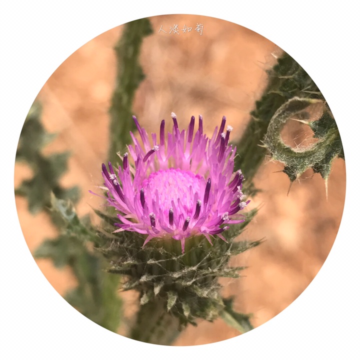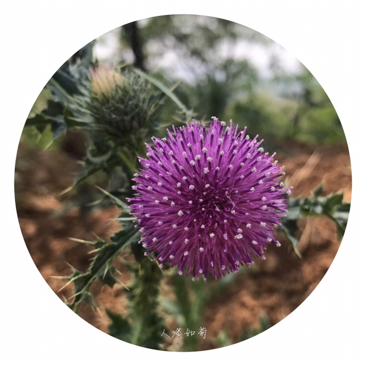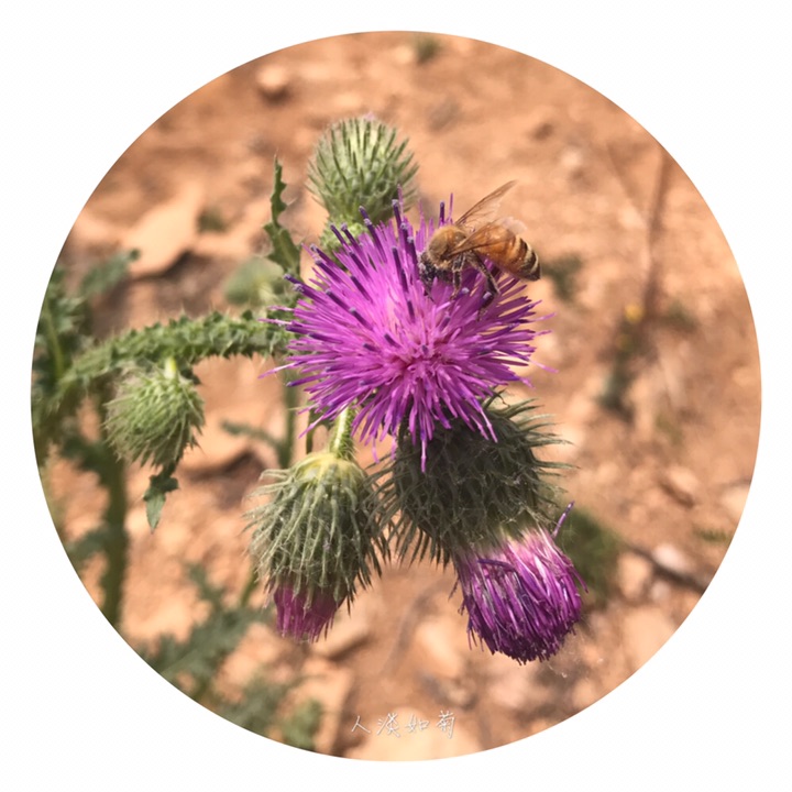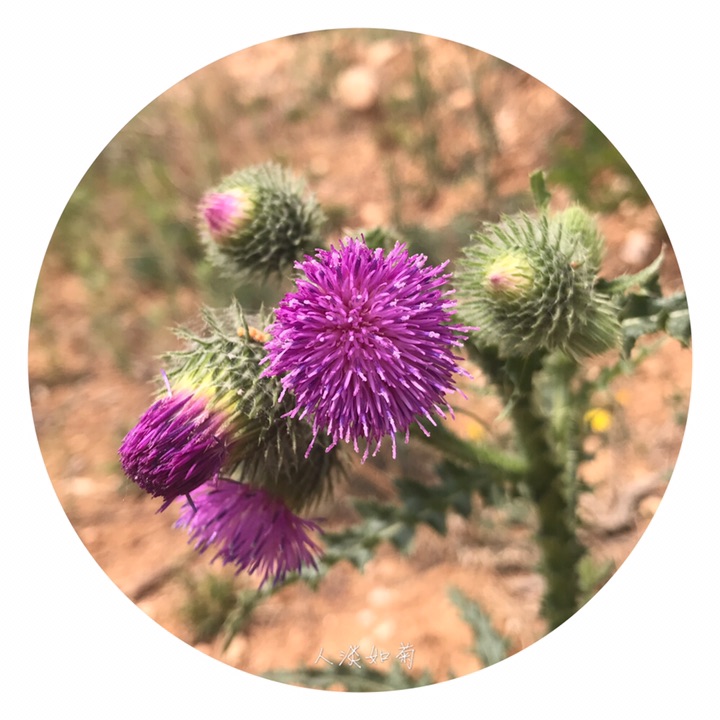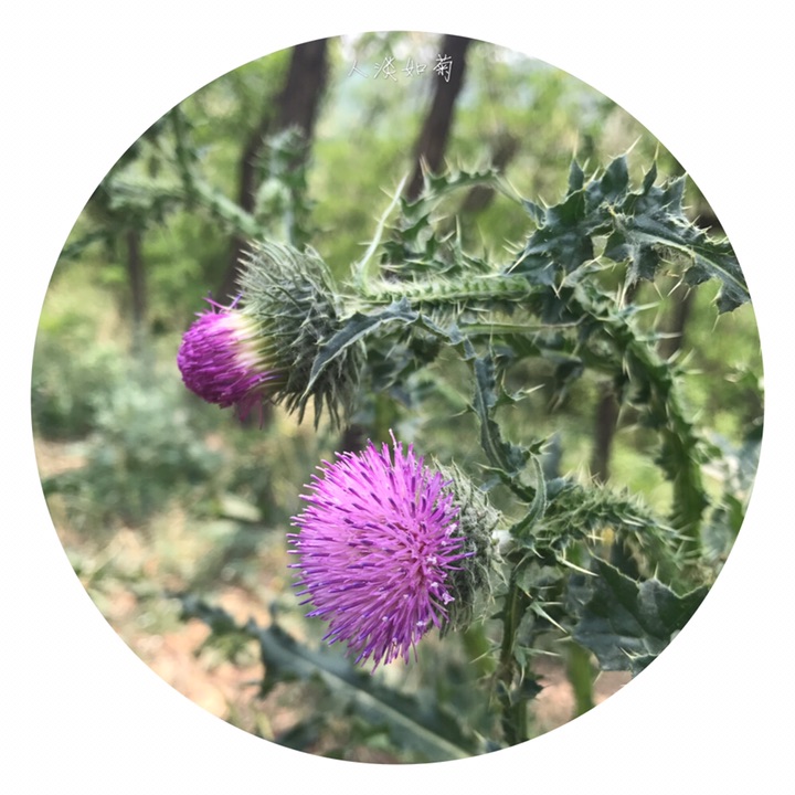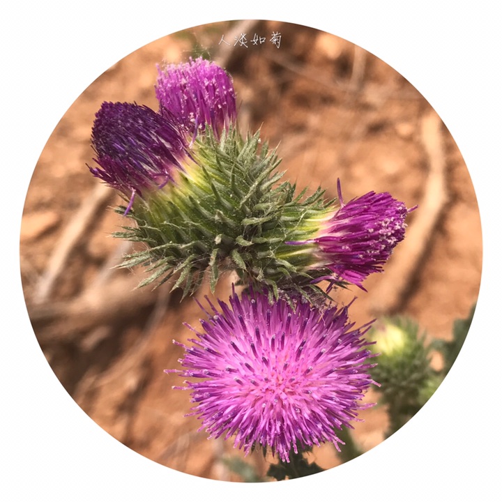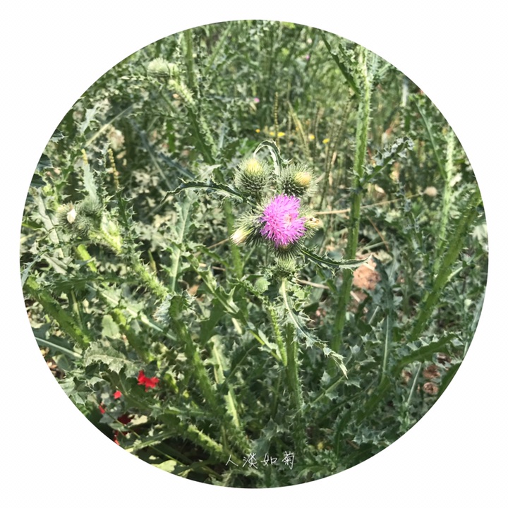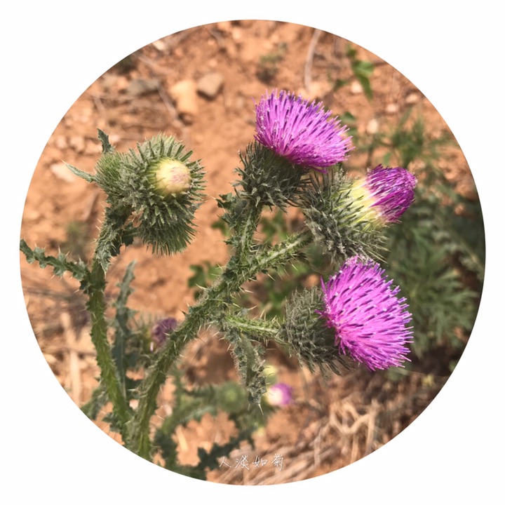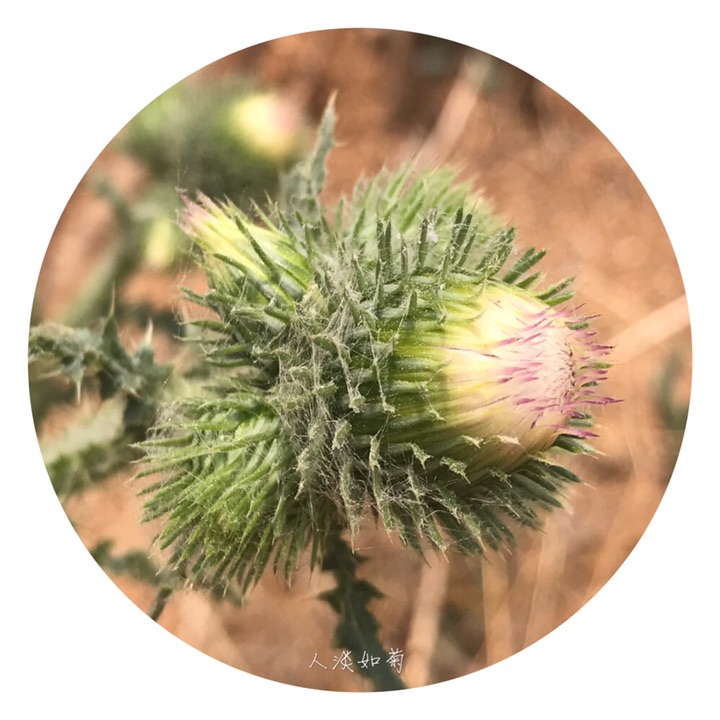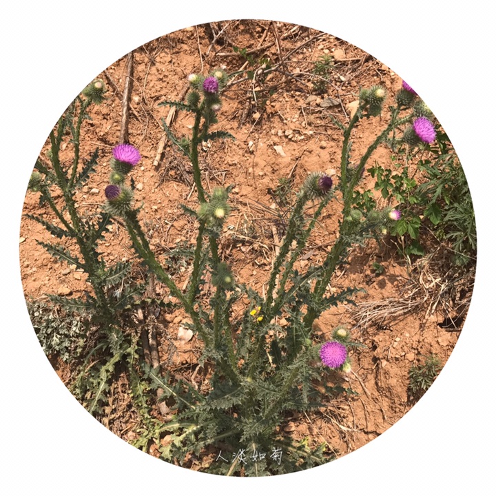 菊科飞廉属植物,别称飞帘、飞轻、天荠、伏猪、伏兔、飞雉、木禾、老牛错、红花草。为二年生或多年生草本,茎圆柱形,具纵棱,并附有绿色的翅,翅有针刺。叶椭圆状披针形,羽状深裂,裂片边缘具刺,头状花序干缩,总苞钟形,黄褐色,花紫红色,冠毛刺状,黄白色,气味微弱。