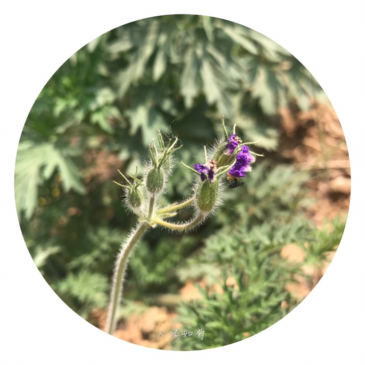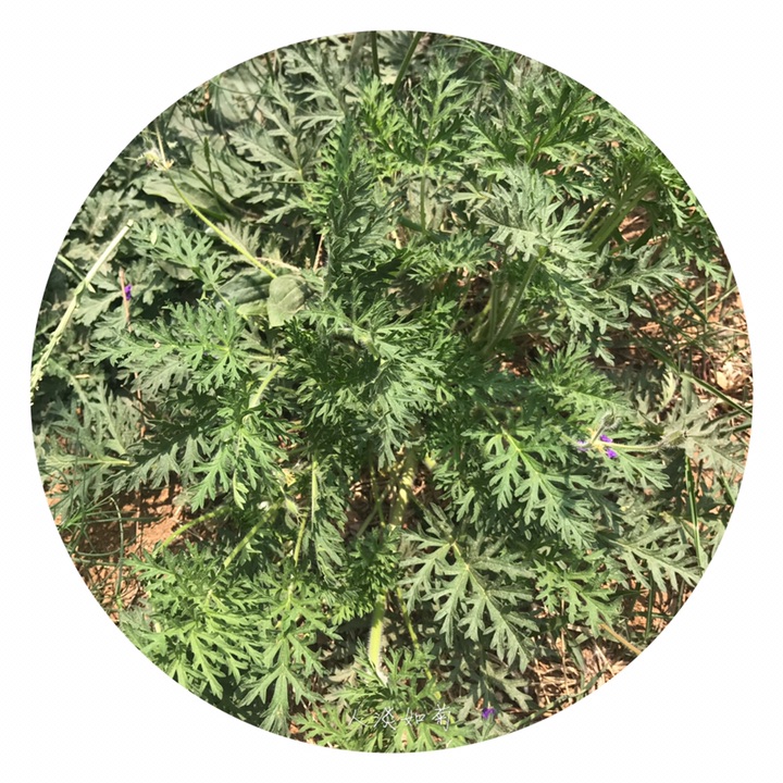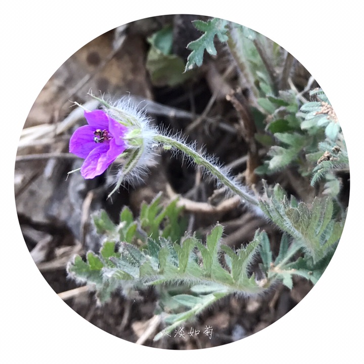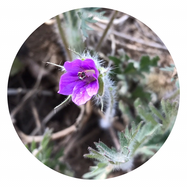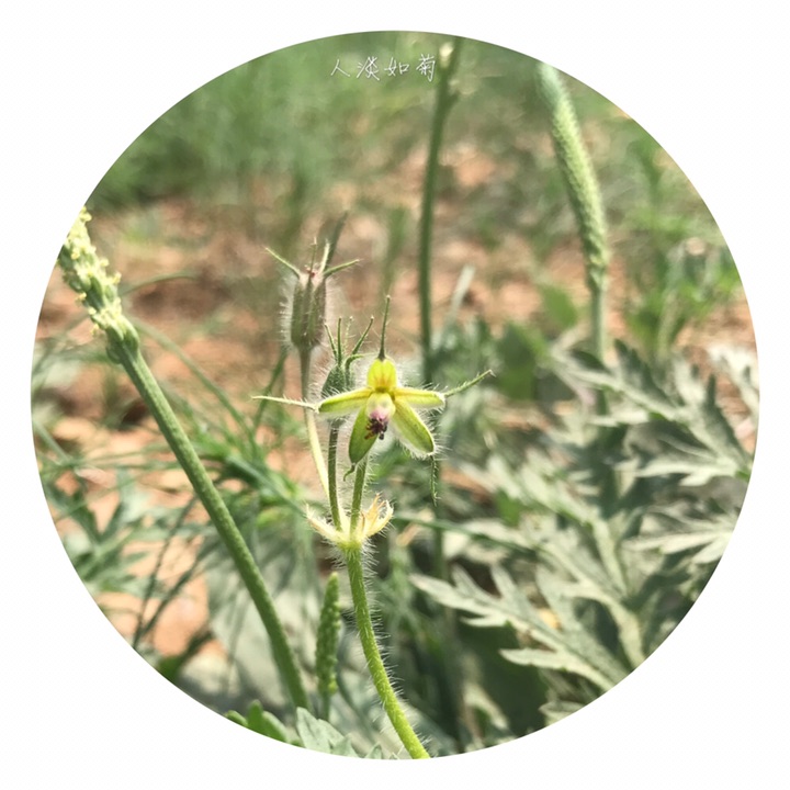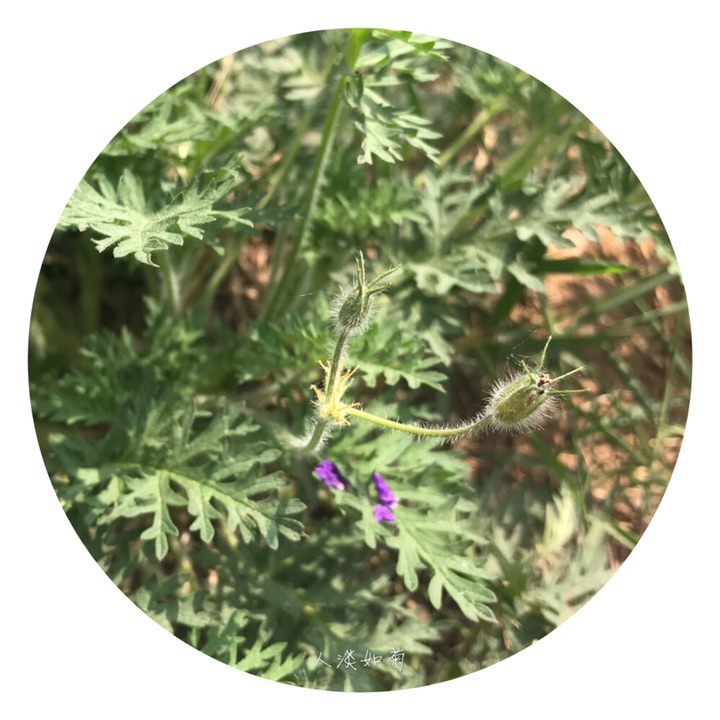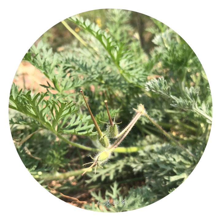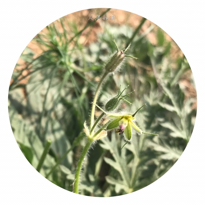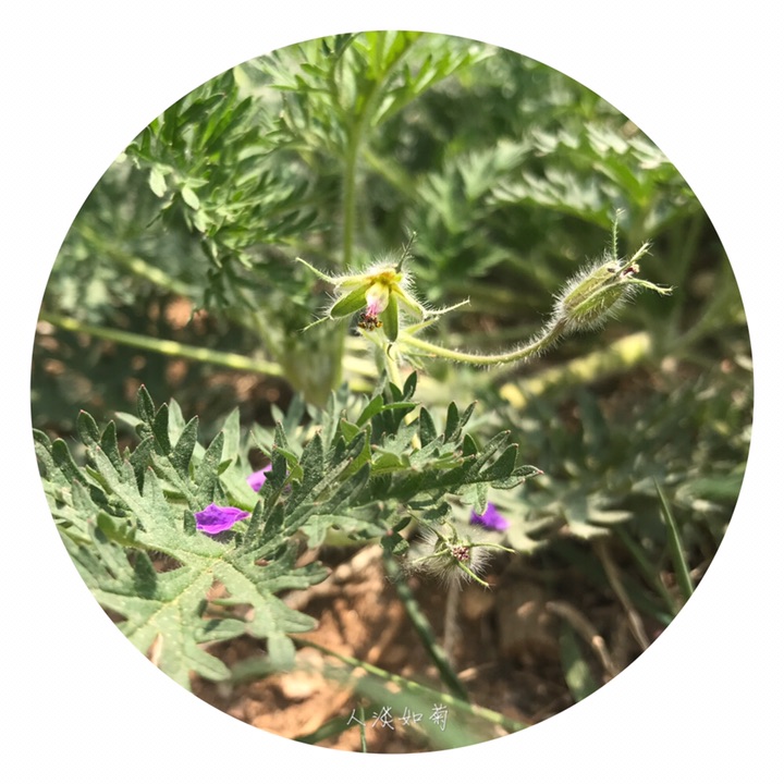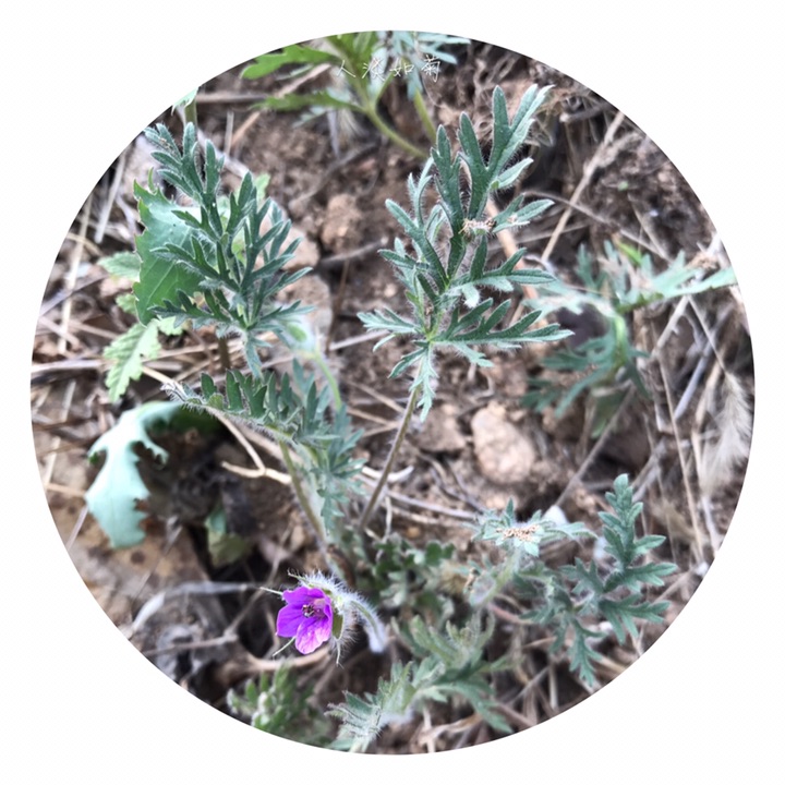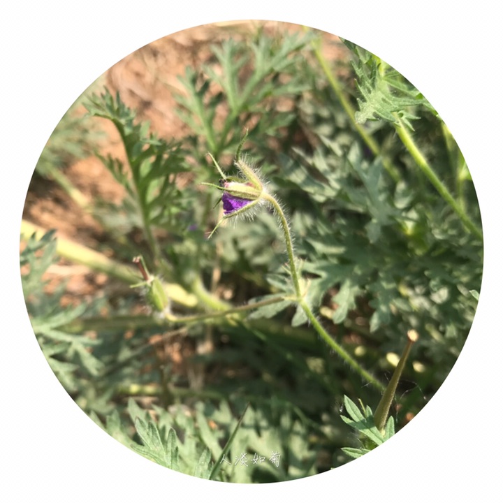 牻牛儿苗(Erodium stephanianum Willd.),多年生草本,高通常15-50厘米,叶对生,托叶三角状披针形,全缘或具疏齿,表面被疏伏毛,背面被疏柔毛,伞形花序,花瓣紫红色,倒卵形,蒴果长约4厘米,种子褐色,具斑点。花期6-8月,果期8-9月。牻牛儿苗分布广泛,生于干山坡、农田边、沙质河滩地和草原凹地等。