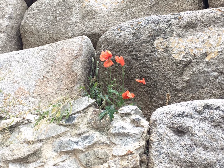 那一年去西班牙旅游,偶尔在古罗马引水渠的墙上发现了几朵花,被它的顽强生命力所感染并拍下了照片,最近查形色得知,那花原来就是虞美人。