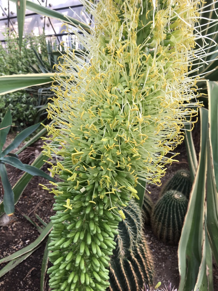 看了北京植物园的推送,知道有那么一种花,一生只开一次,它就是翡翠盘,龙舌兰属。看着那豆芽菜一样细的小花,称作翡翠盘倒也觉得有些道理,培育豆芽的不也是托盘吗?只是整体形状,还是觉得跟象鼻相仿,从此处考虑,该花也可以叫象鼻草。