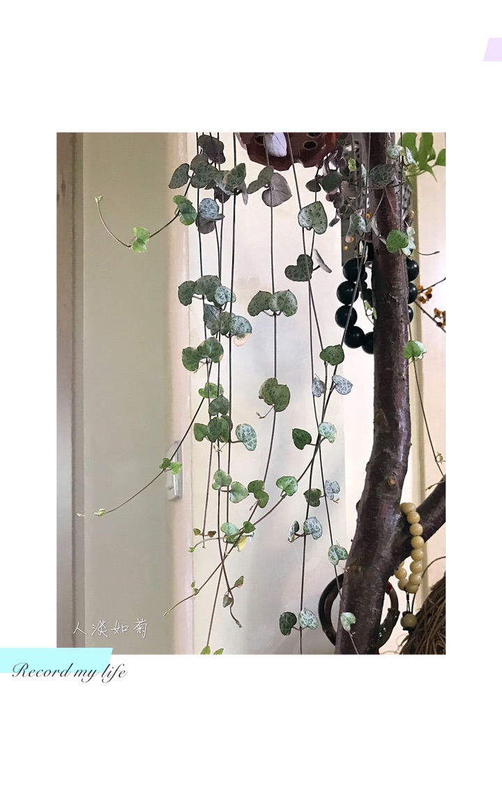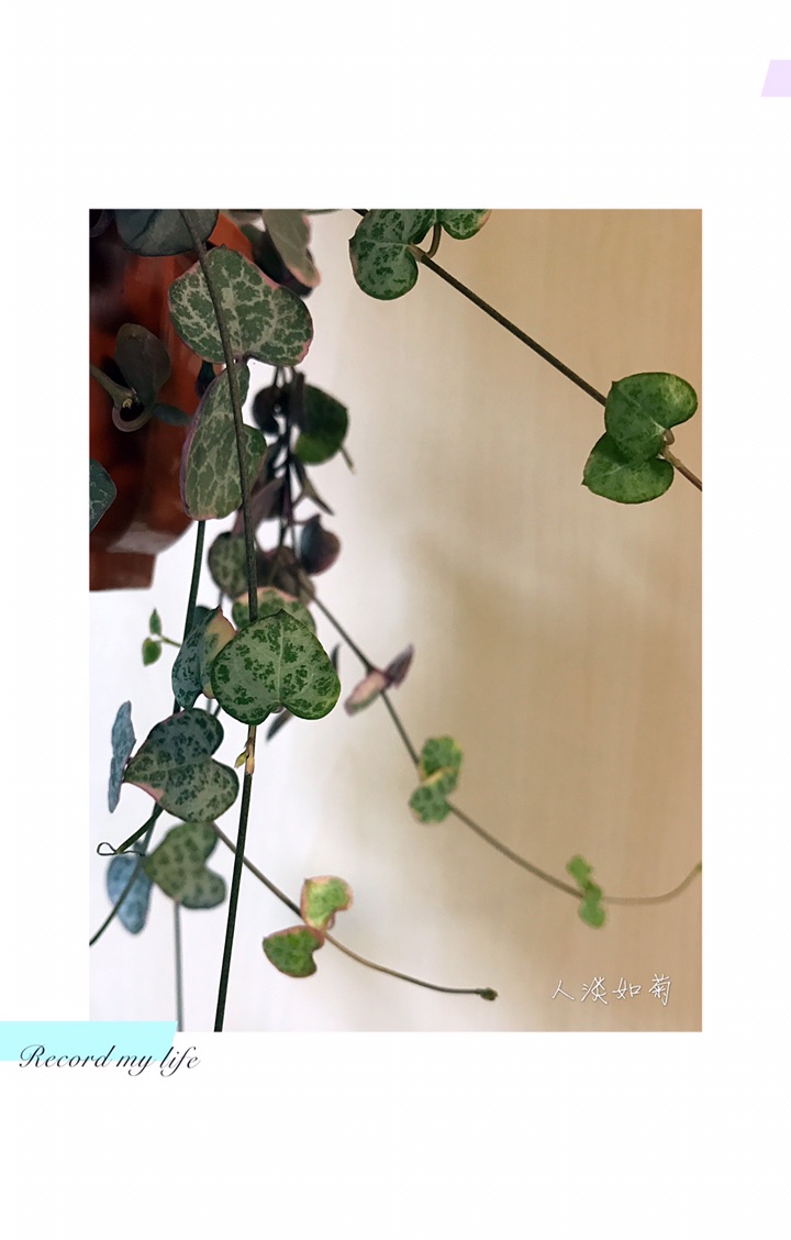 爱之蔓,是我喜欢的少数肉肉之一。一是因为它浪漫的名字,更多的是它的姿态,那漫不经心垂落的枝条宛若少女的长发飘飘洒洒,那一对对心形的叶子相依相偎形影相随,那不断长出的新芽象征着爱的蔓延……