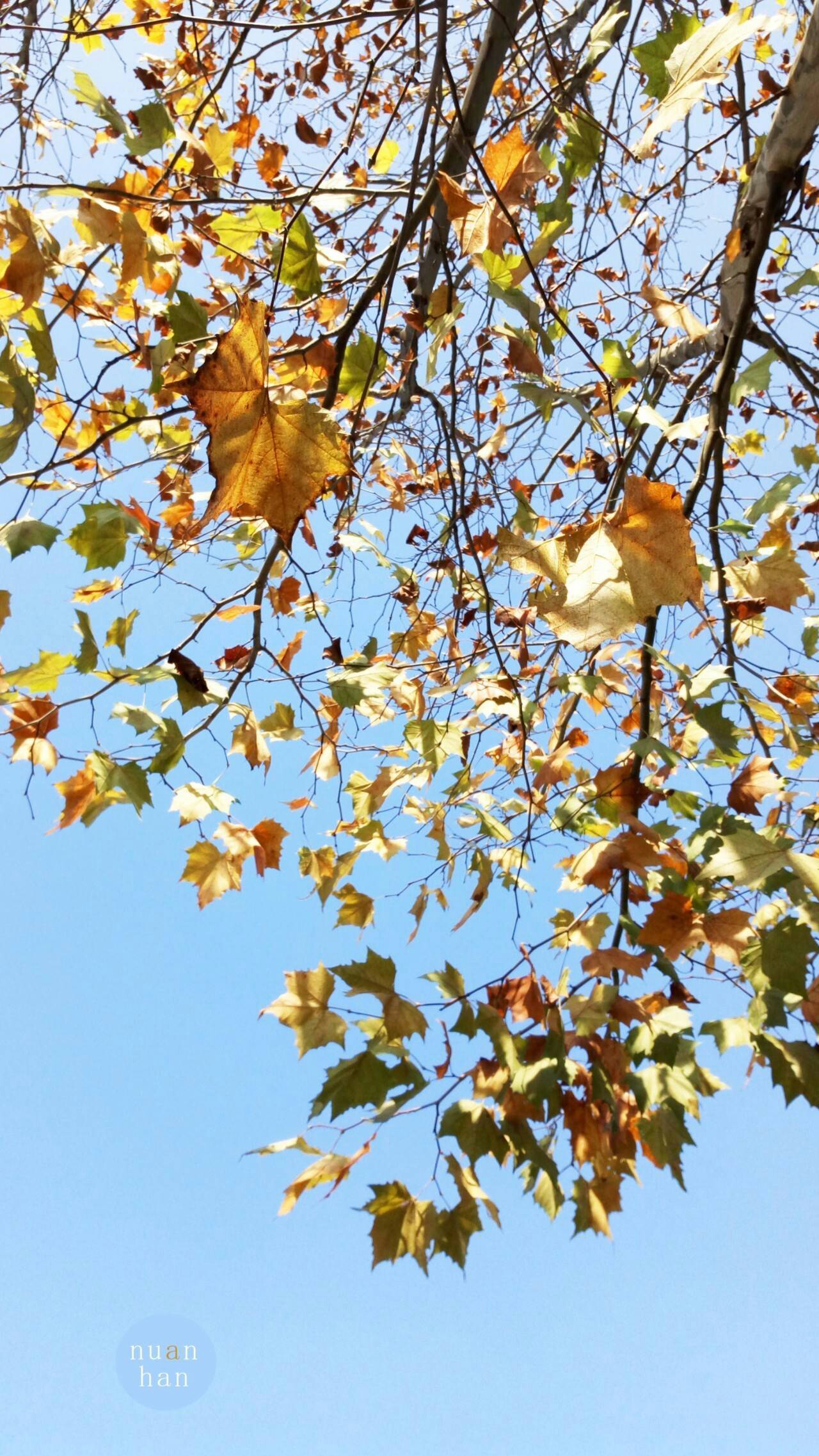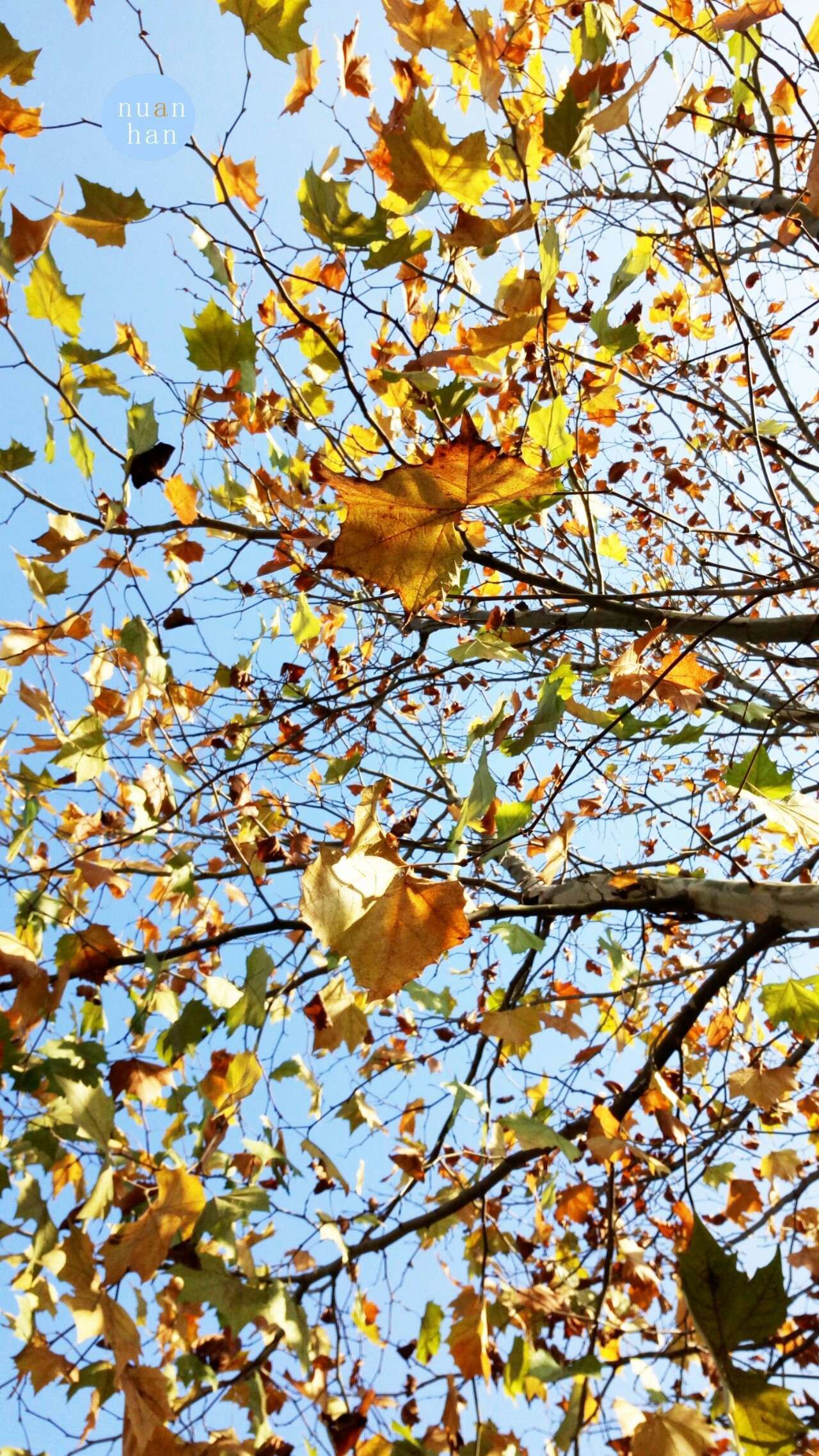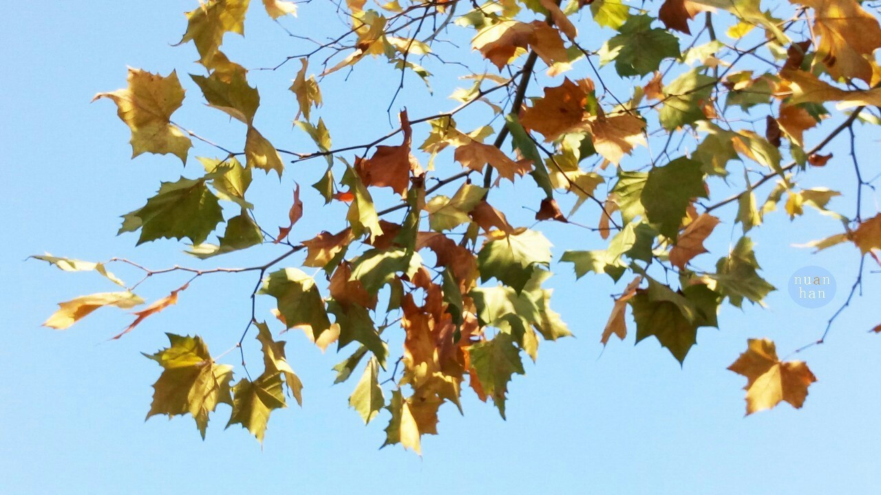 县城汽车站的路边,不知在何时种上了银杏与被我误认为“梧桐”的悬铃木。那日晴空万里,抬头看着五颜六色的悬铃木在秋风中摇曳着,好想让时光就在那一刻停止。听风吟,听叶语,一整天。