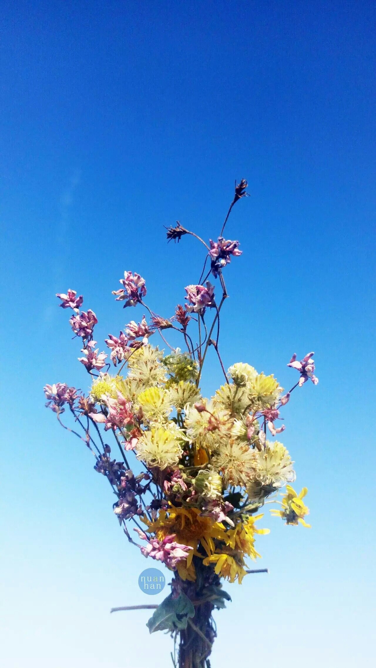 那一天有幸在河水边的杂草里遇见。我又忍不住采摘了一些,与野菊花倒挂在家中,待其自然风干,欣赏其另一种姿态的美。