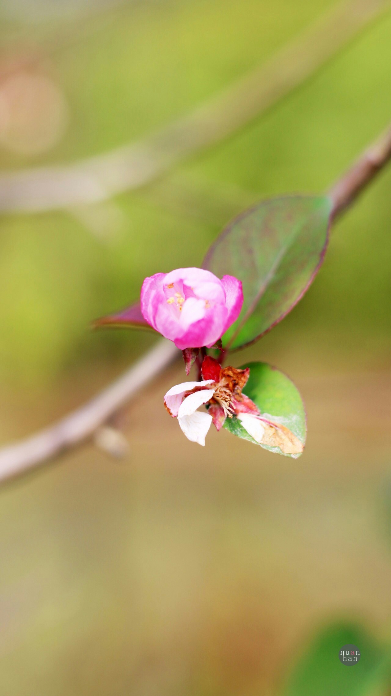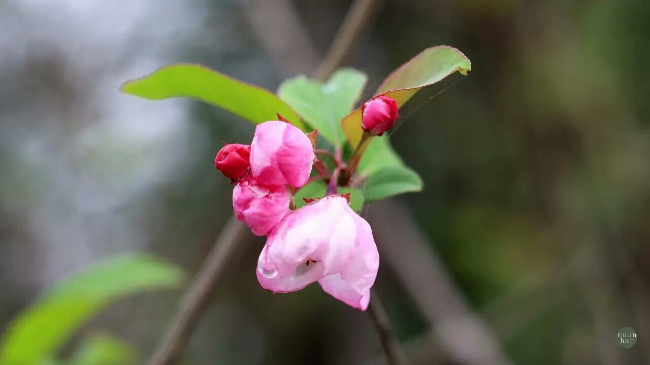 某一天偶然在路边发现几株垂丝海棠,起初并不知其名,问好友才得知。纤细的枝干上有少许绿叶,三两朵的海棠花在这宁静一隅盛开着,粉色的花儿在绿叶的衬托下显得十分娇美。