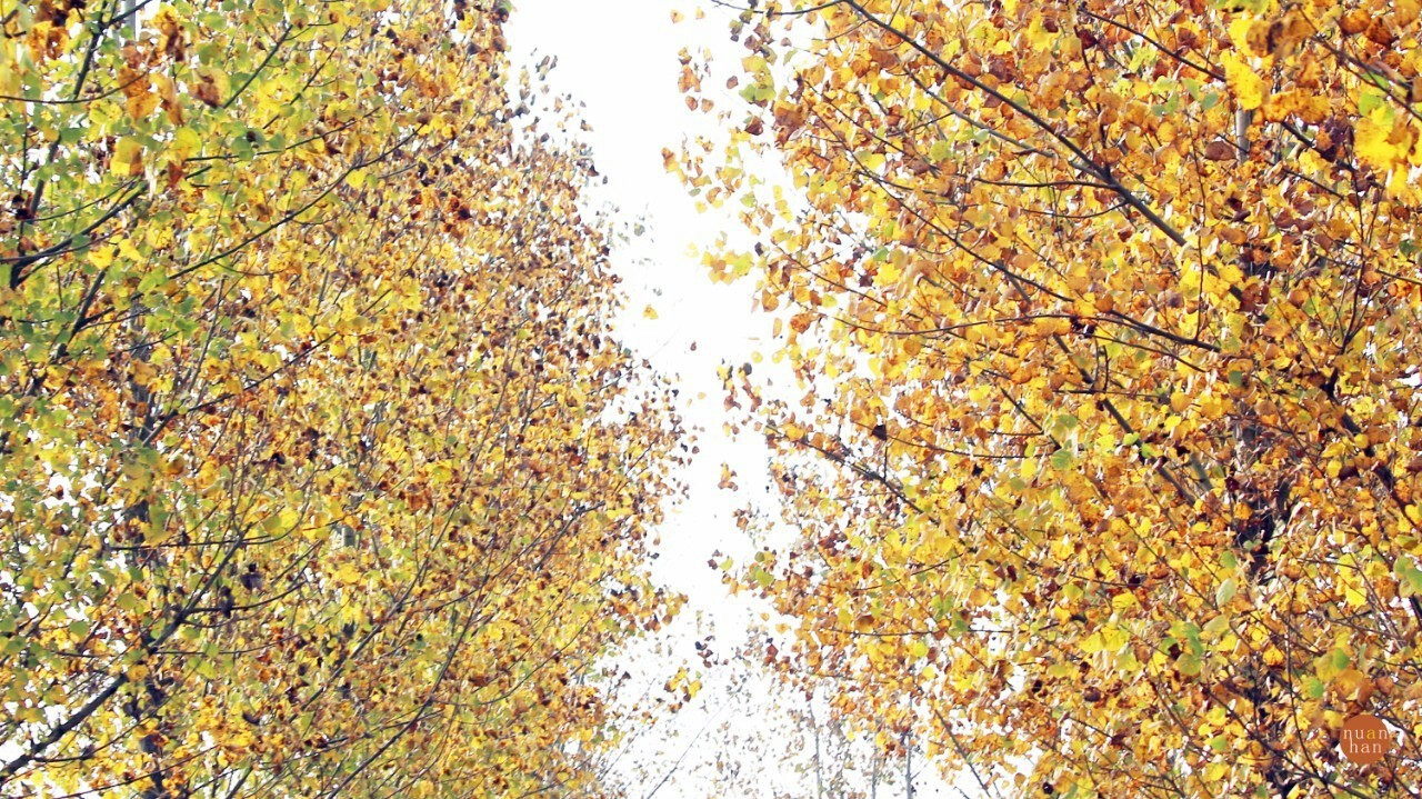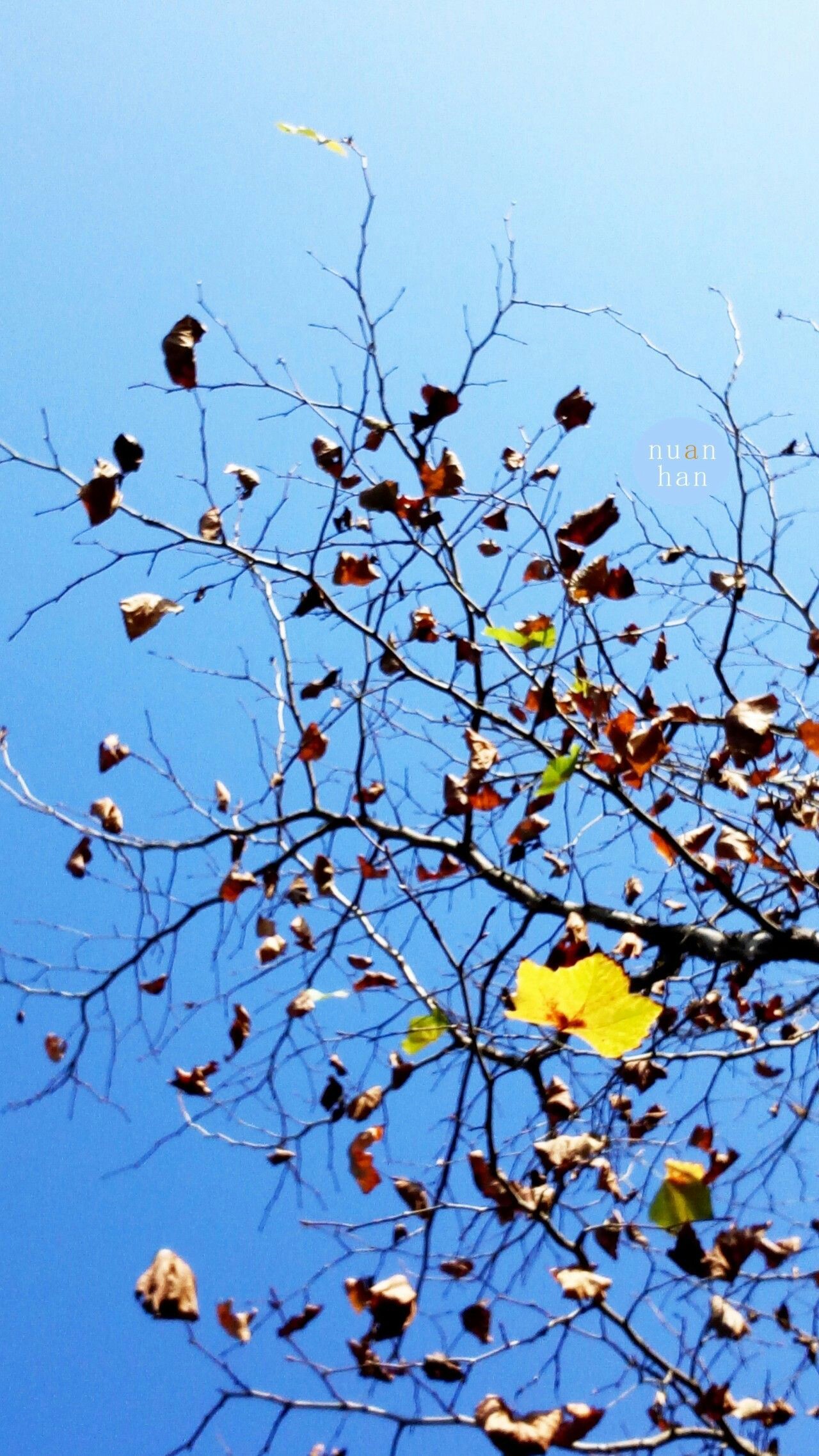 一个星期后路过那边时,树上只剩少许黄褐色的叶子,努力挂在树枝上,舍不得告别。