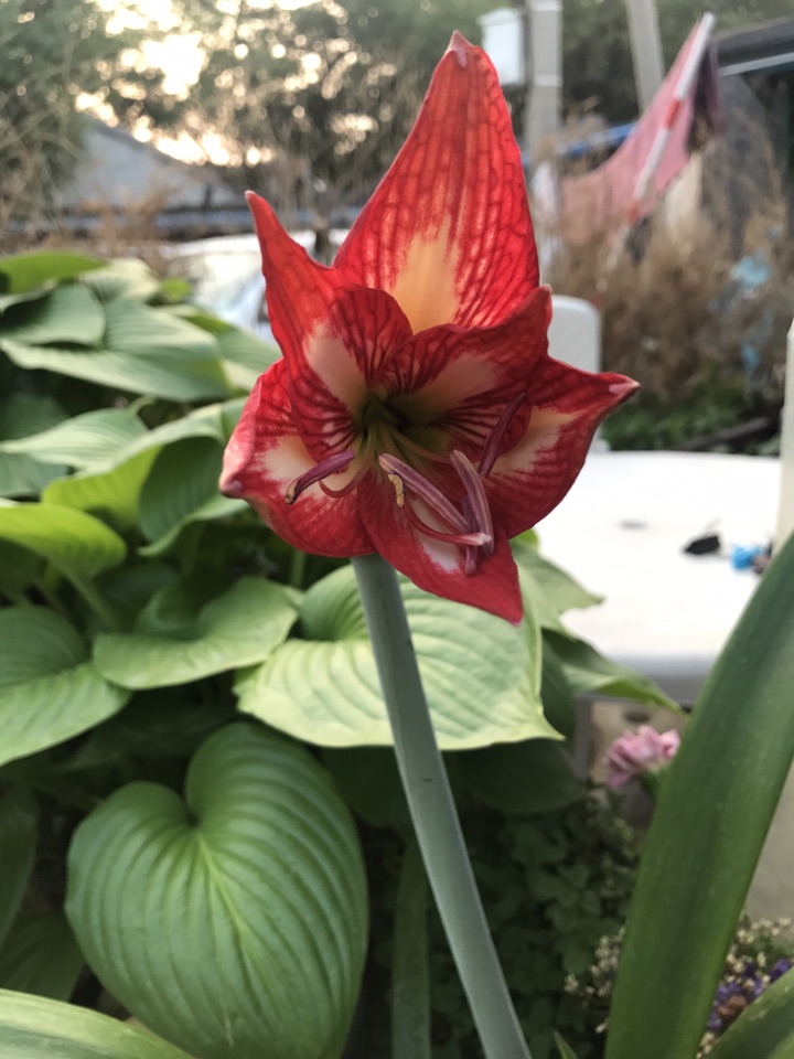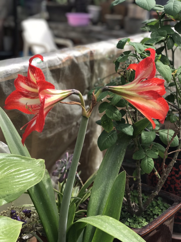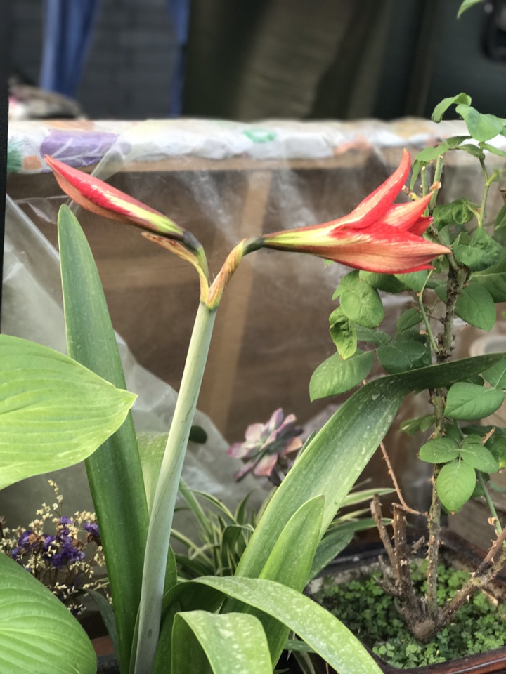 开花第一天。16号下午6点半左右拍的,结苞两朵初开一枝。