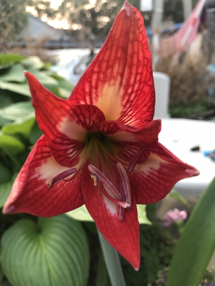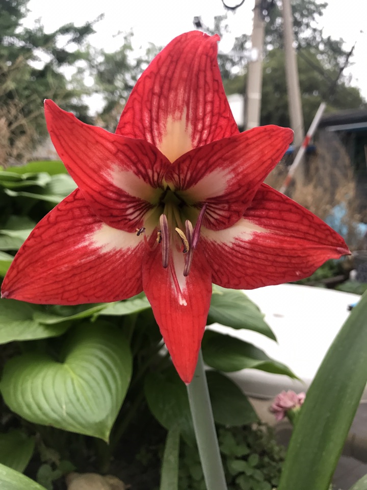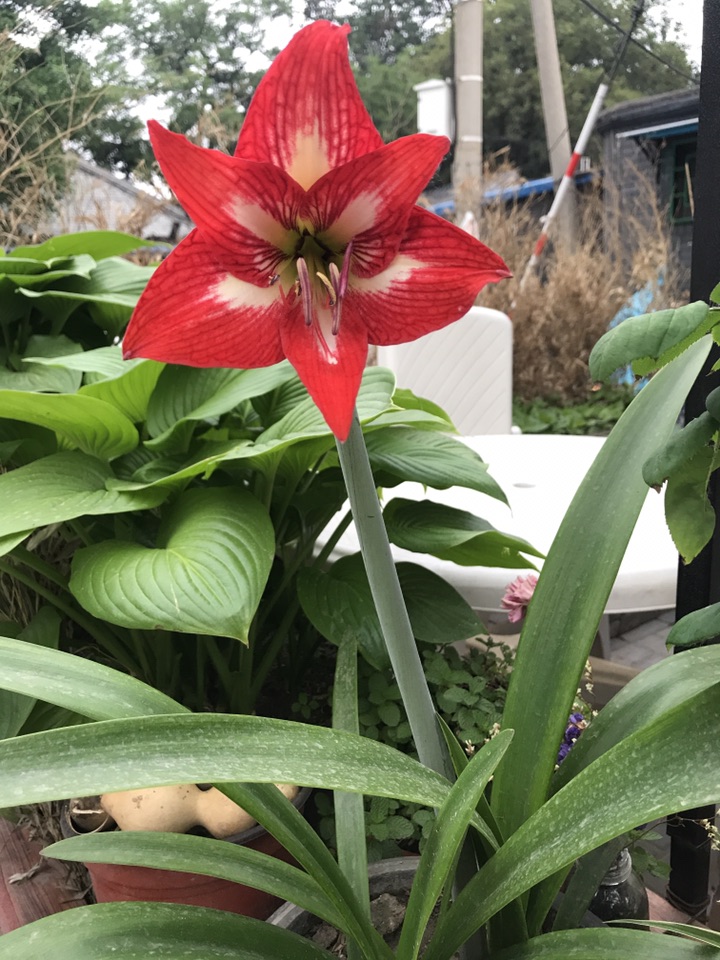 朱顶红(学名:Hippeastrum rutilum)又名红花莲(海南植物志)、华胄兰(华北经济植物志要)、线缟华胄、柱顶红、朱顶兰、孤挺花、华胄兰、百子莲、百枝莲、对红、对对红等。是石蒜科朱顶红属的多年生草本。