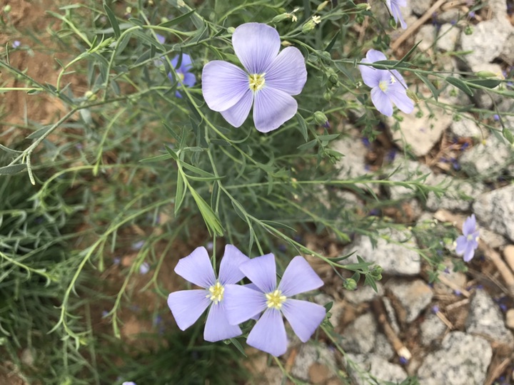 宿根亚麻别称多年生亚麻、豆麻、蓝亚麻,是一种多年生宿根花卉,可作一年生栽培。株高40~50cm,基部多分枝,茎丛生、直立而细长。叶互生,披针形,浅蓝绿色。花梗纤细开花5瓣,乖巧清新一副弱不经风的样子