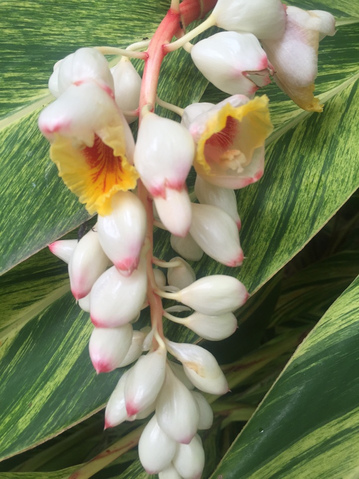 艳山姜到了开花季,它的花儿一串串垂下来,清新甜美,异常美丽。