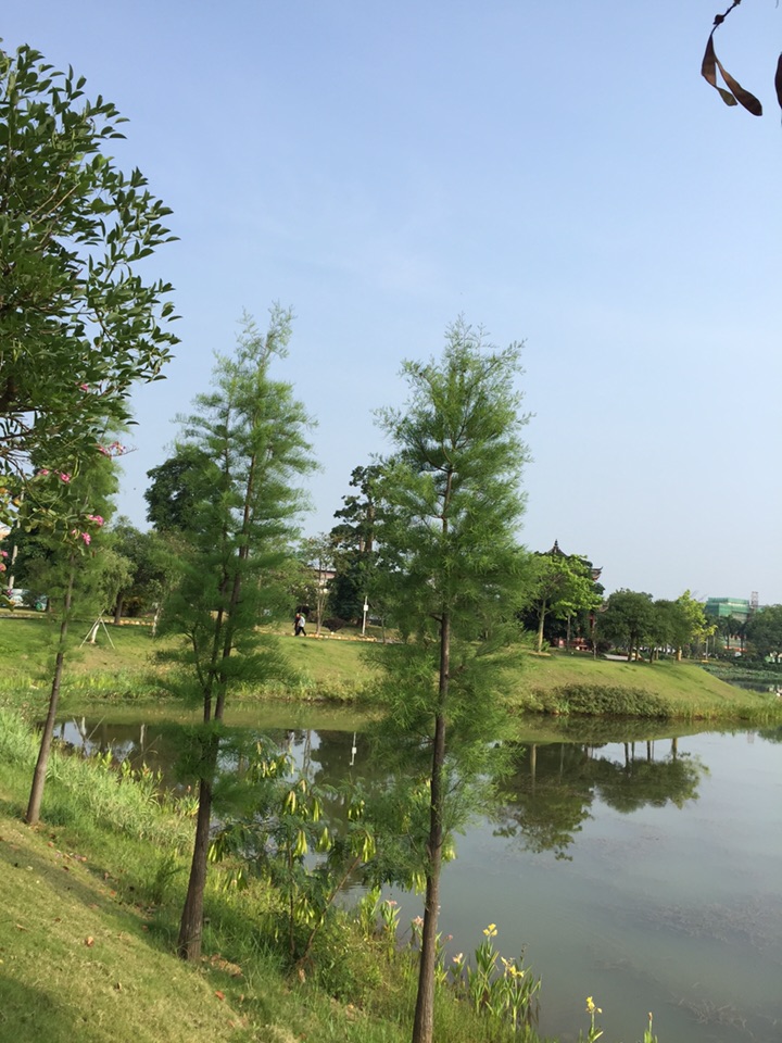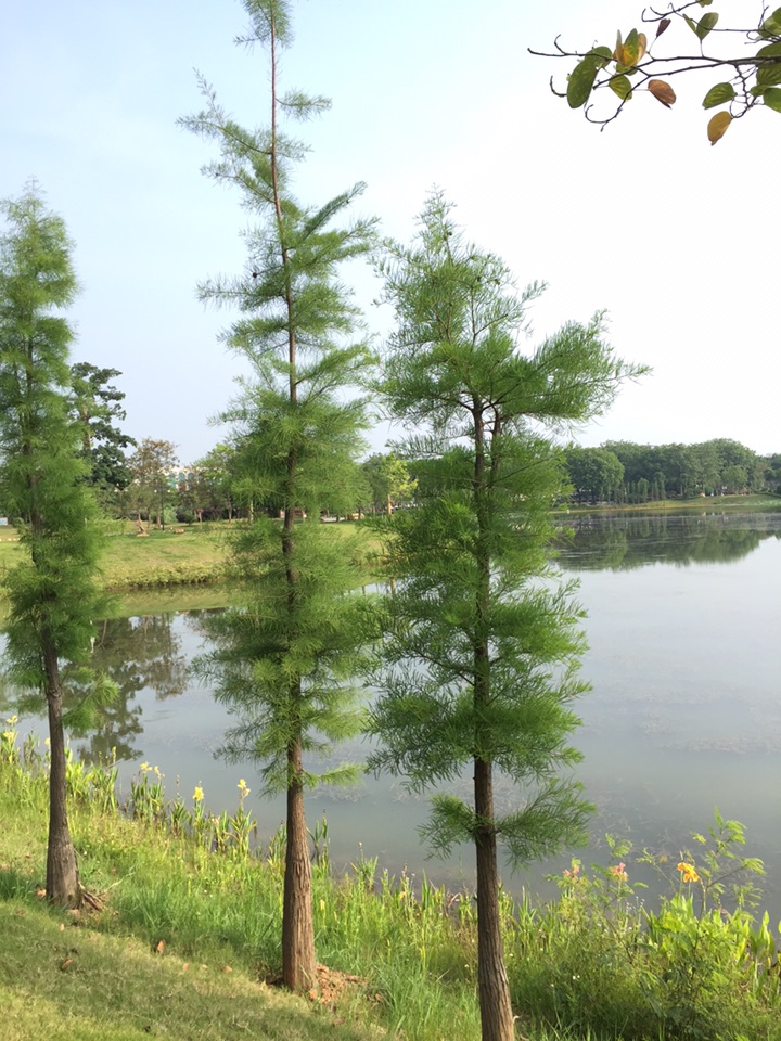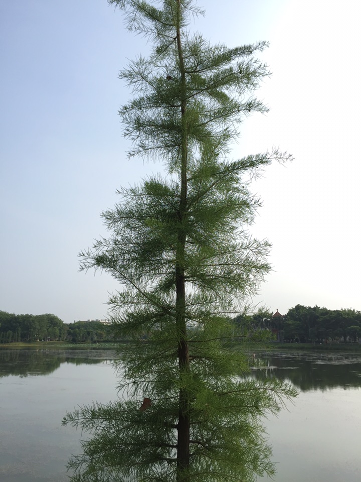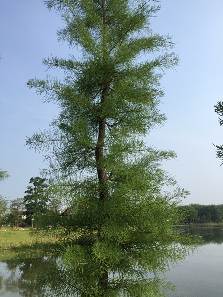 一排池杉临水而立,枝干挺拔,枝叶翠绿,清新宜人,想起这就是"玉树"的风采吧!😊(20180519)
