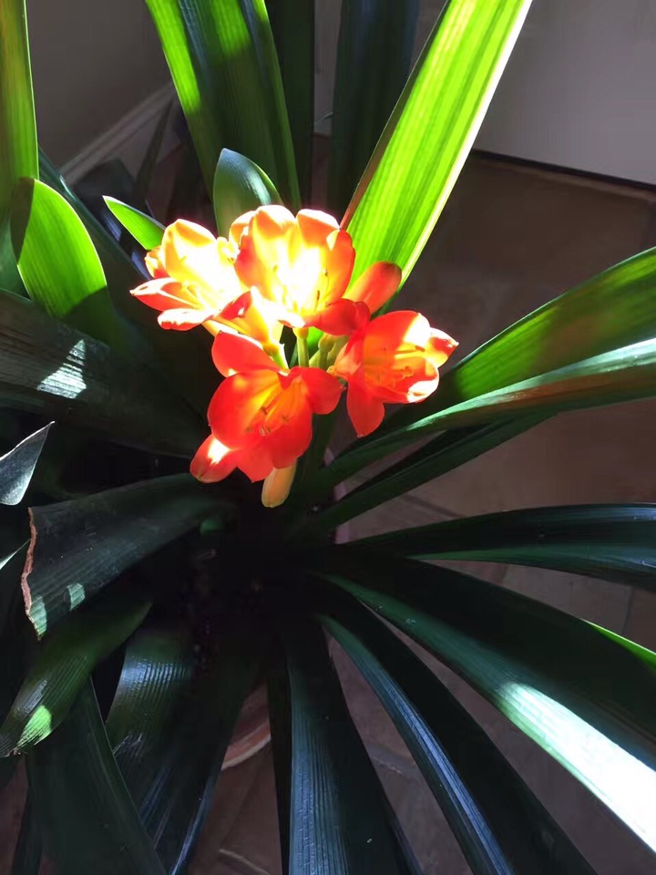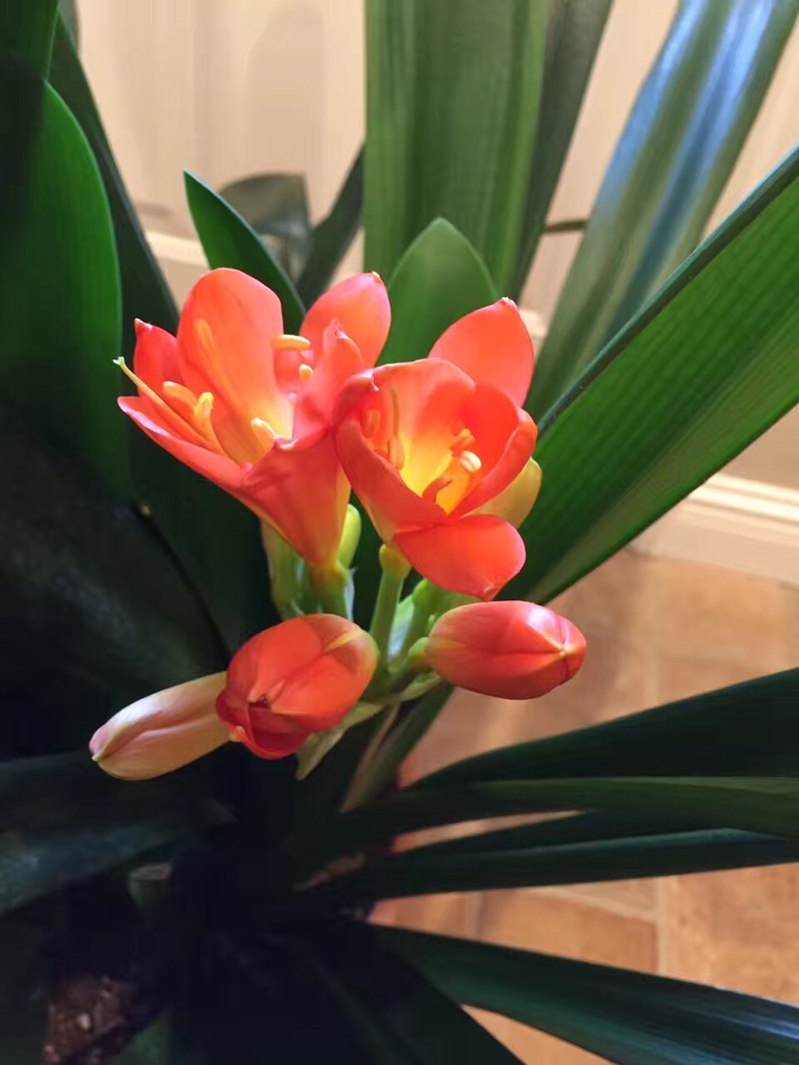 无奈的是,后来搬家离她更远,接花儿回家的愿望就更难实现了。实在太想念那盆君子兰了,所以新家刚安顿下来便迫不及待地出去探寻,终于在一家花店买到一盆君子兰、实现了我的君子兰之梦!