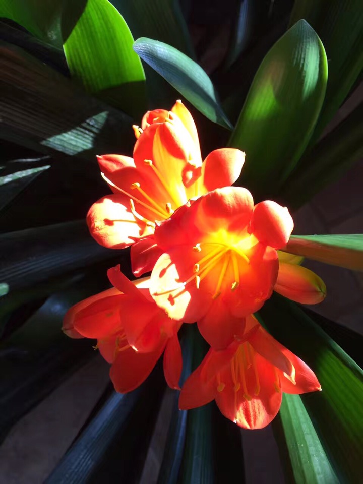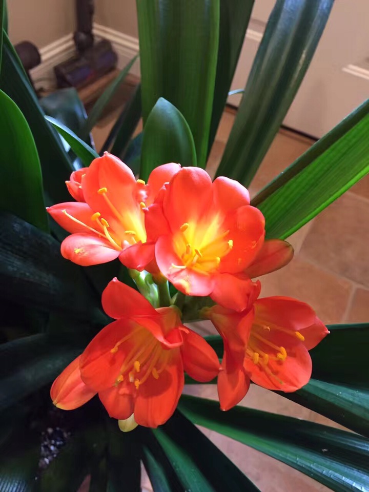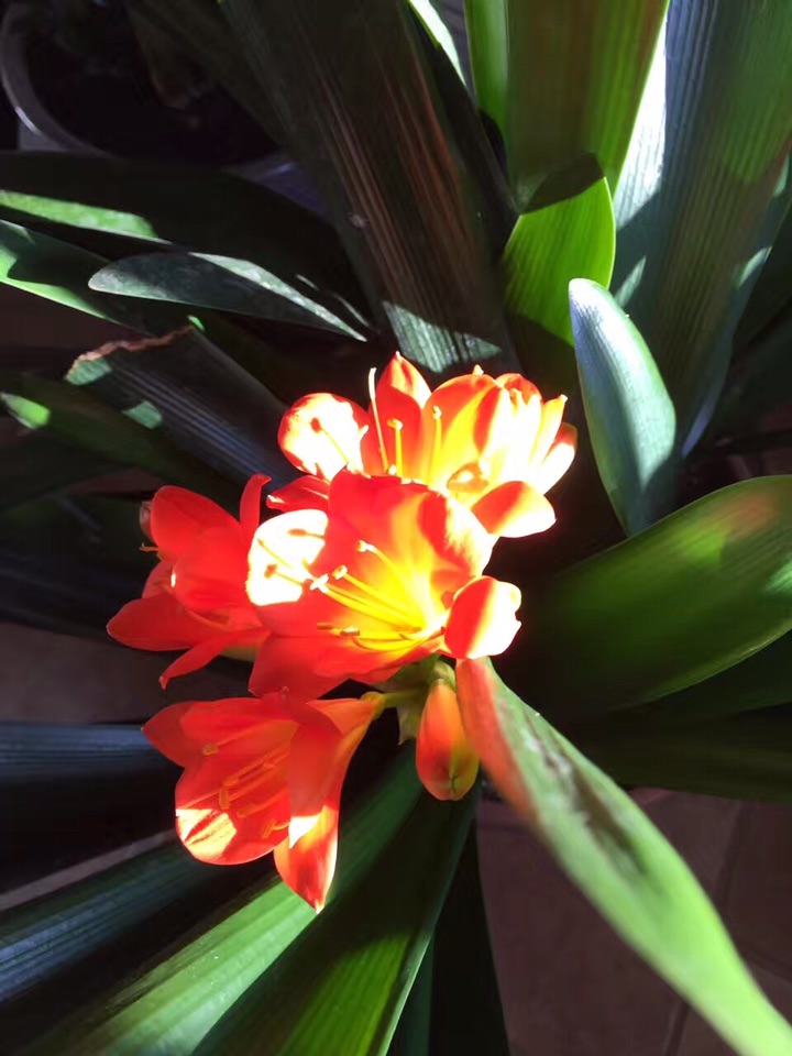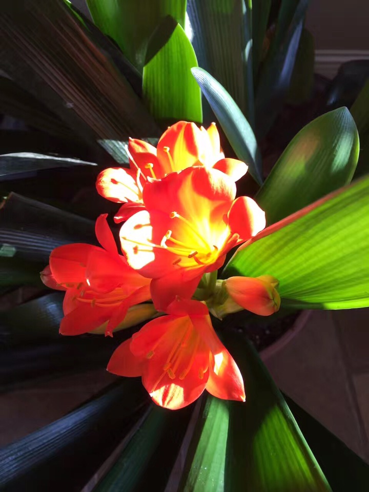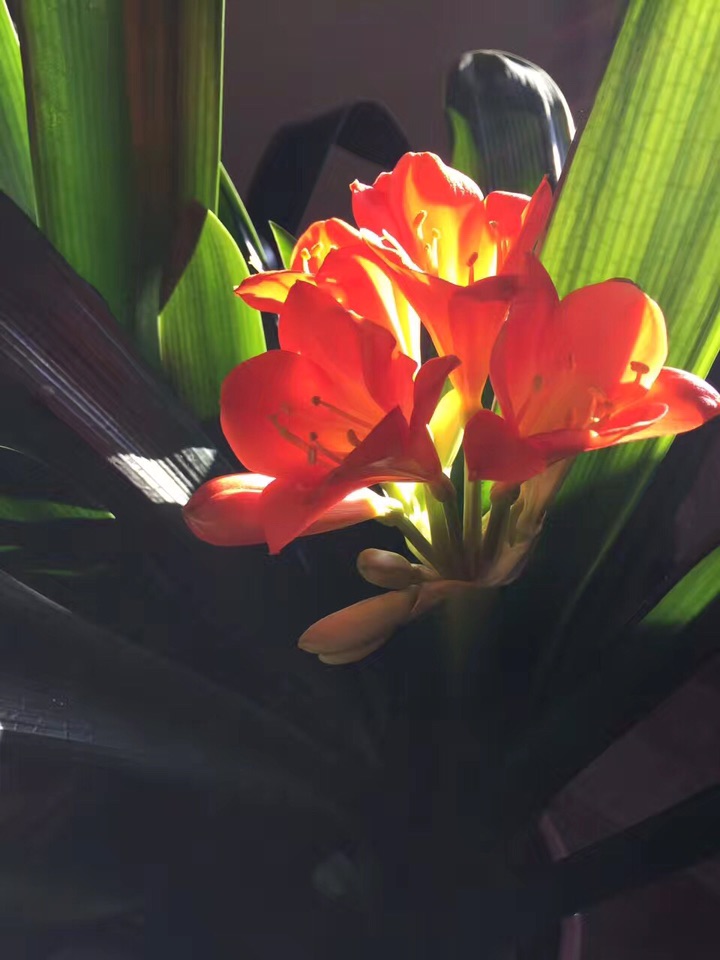 多年以前,朋友分株送我一盆君子兰;虽说爱不释手、目不能移,无奈距离太远、时机不合适,始终没能搬回到家,只好寄养在她家。从那之后,只有偶得机会去拜访朋友一家才能一饱眼福、左看右瞧、只希望能早日能让其回家安居。朋友真是养君子兰的一把好手,把花养得健康、美丽、勃勃生机,好大一盆啊!