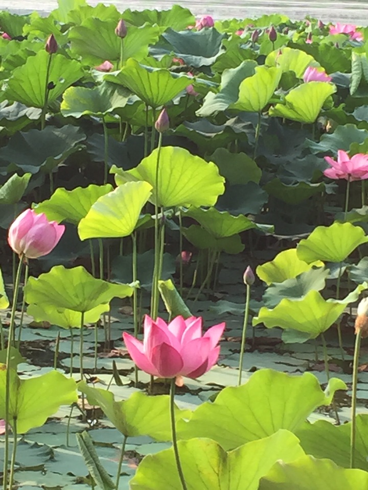 一直喜欢李商隐"惟有绿荷红菡萏,卷舒开合任天真"这句诗,总觉的他真正写出了荷叶荷花互相交映,相得益彰的完美相配之景。