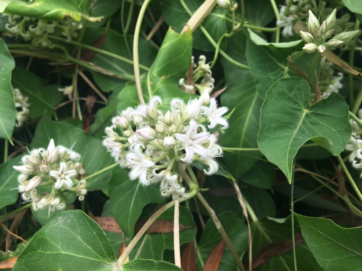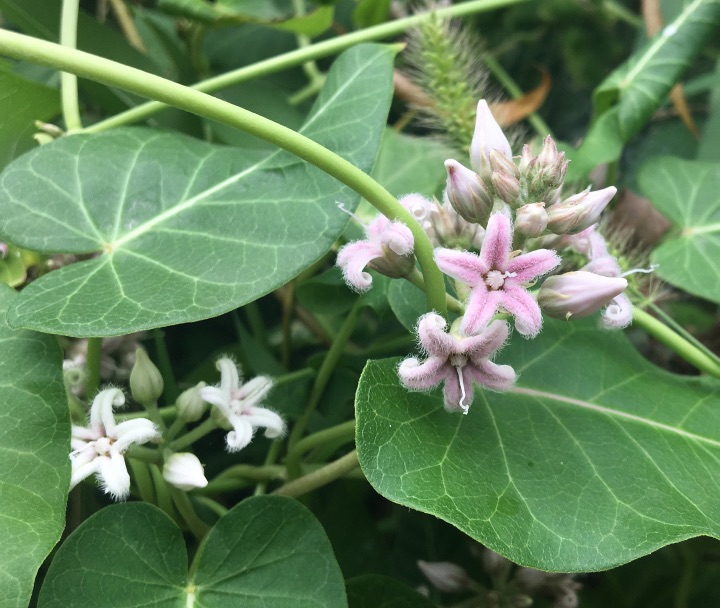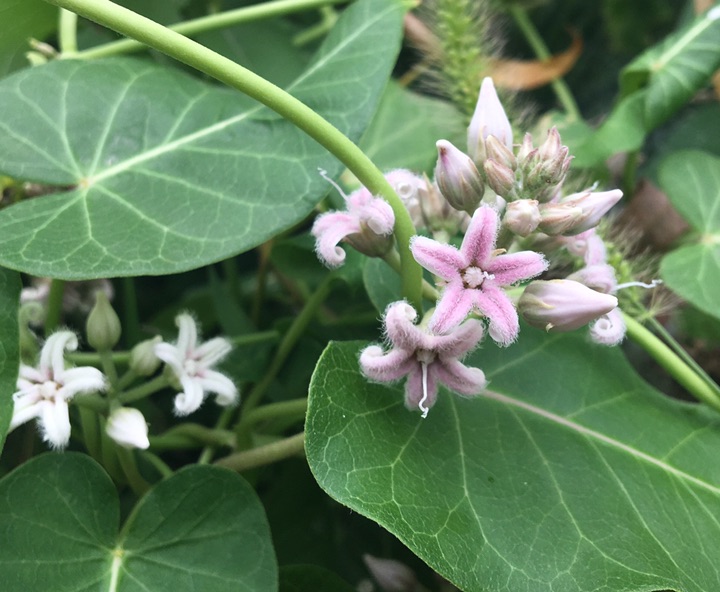北京植物园湖边发现的小花, 五角星状,有粉有白,可爱。