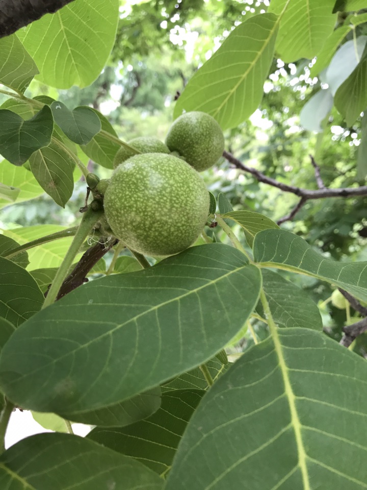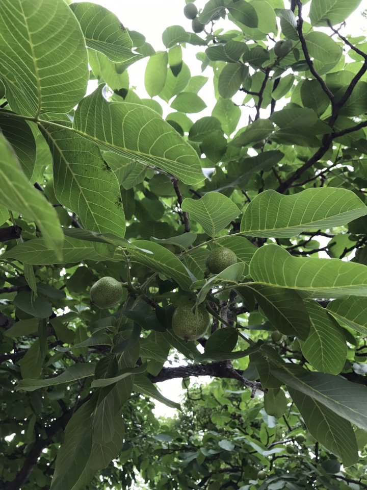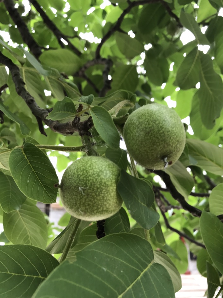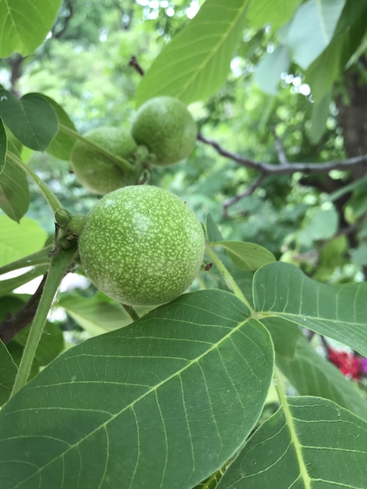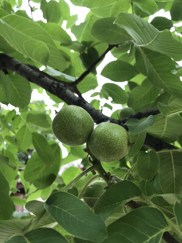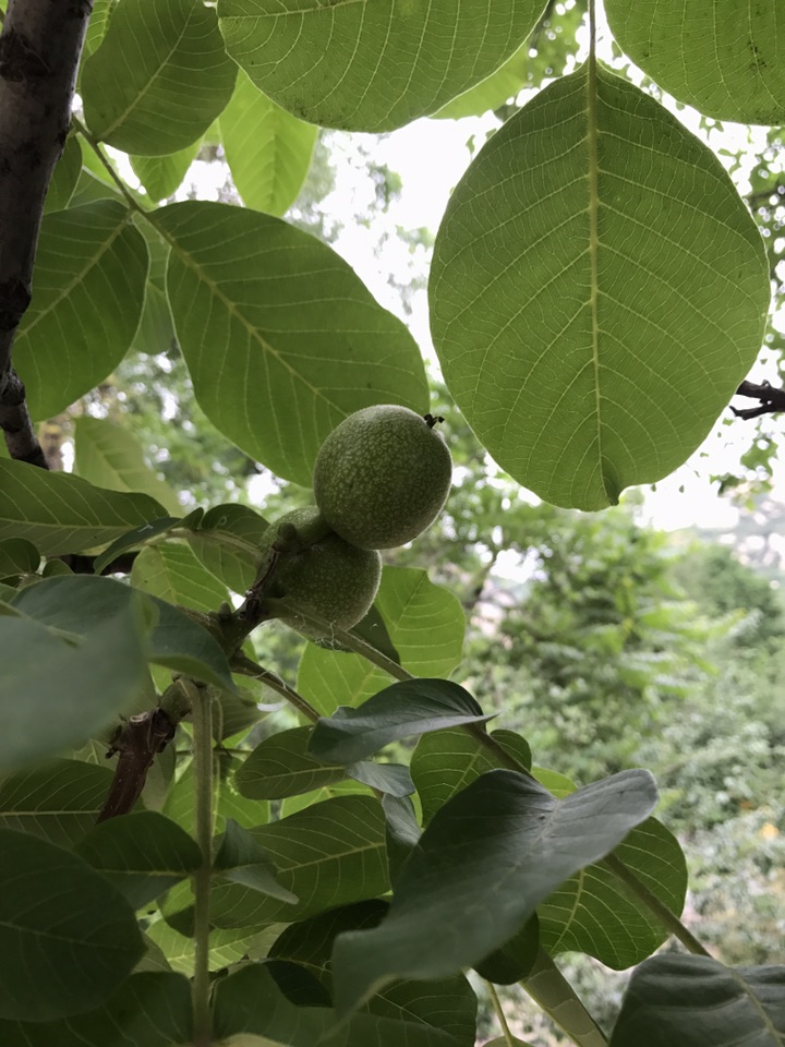 认识核桃树的人估计就少了,我也算是一个。这是长在寺庙里的一株大树,绿叶繁茂,一开始我并没有注意,树下摆着好些盆花花草草,我一门心思的低头拍花。然后朋友突然对我说,抬头!我不明所以的抬了抬头,并没有发觉有什么动静。直至朋友问我你看那是什么果子?才注意到头上葱翠间长着好些个圆圆的带着斑点小青果,可是这是什么果呢我并不清楚。身旁经过的热心游人告诉我们这就是核桃。