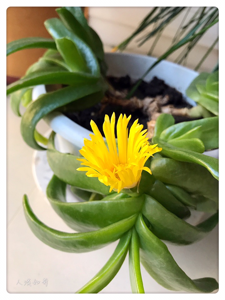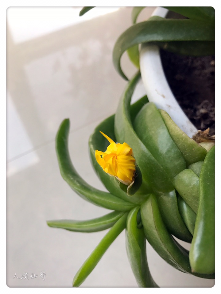 这盆佛手掌是婆婆送给我的,是我喜欢的肉肉之二,其实它还有好多名字,但我喜欢叫它佛手掌。绿油油干净的叶片,黄灿灿耀眼的花朵,总显得有些与众不同。