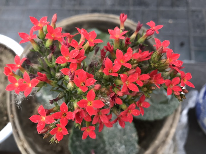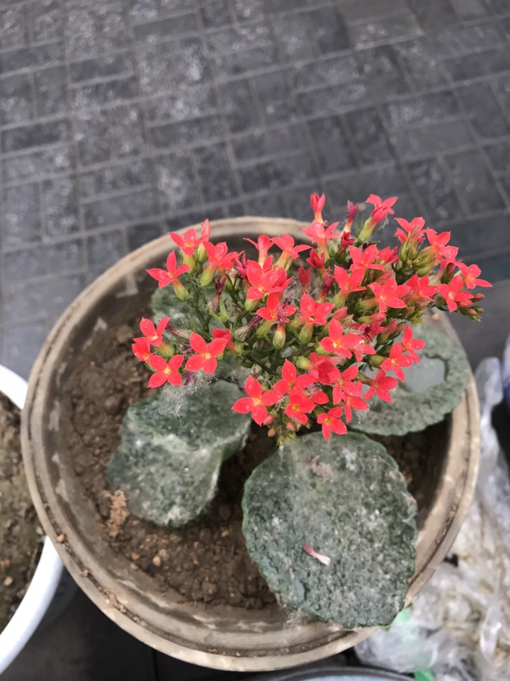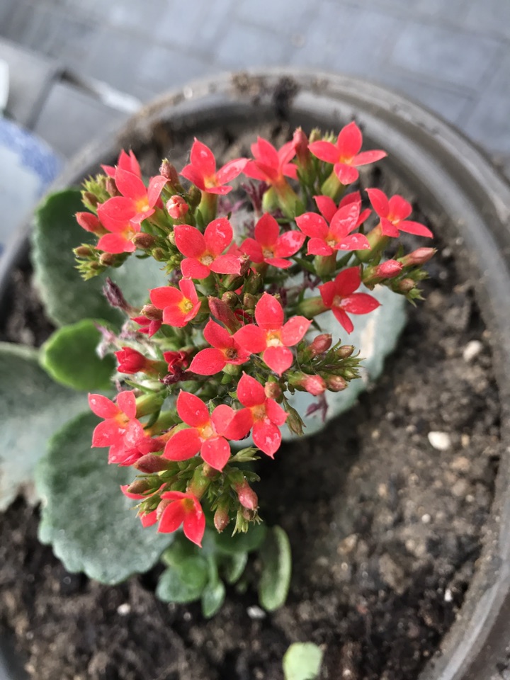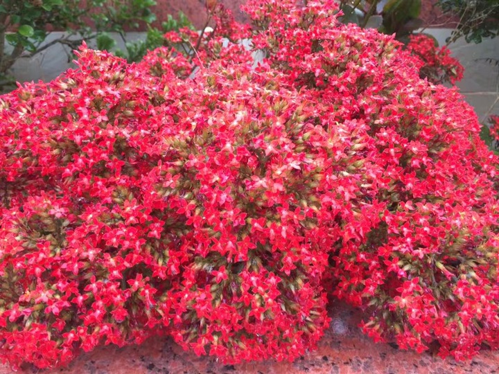 长寿花(Kalanchoe blossfeldiana cv tom Thumb)别名寿星花、假川莲、圣诞伽蓝菜、矮生伽蓝菜。属景天科,伽蓝菜属。原产非洲马达加斯加,为多年生肉质草本。植株小巧玲珑,株型紧凑,叶片翠绿,花朵密集,花期长达4个多月,长寿花之名由此而来。故节日赠送亲朋好友长寿花一盆,大吉大利,长命百岁,也非常合适,讨人喜欢。