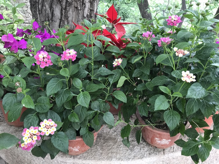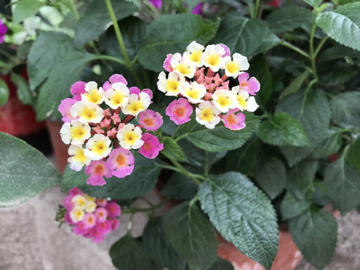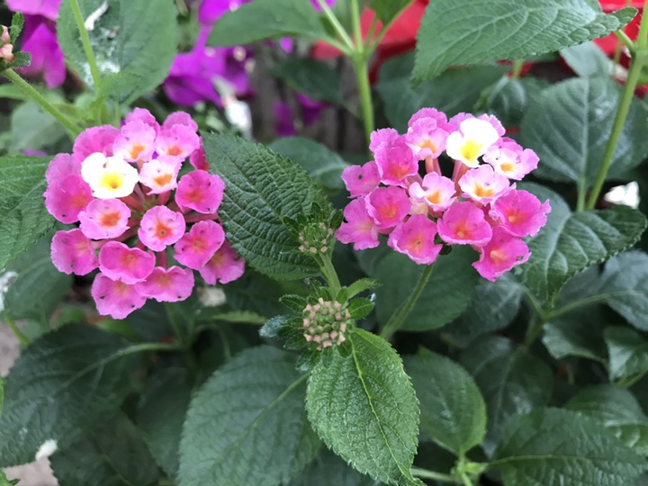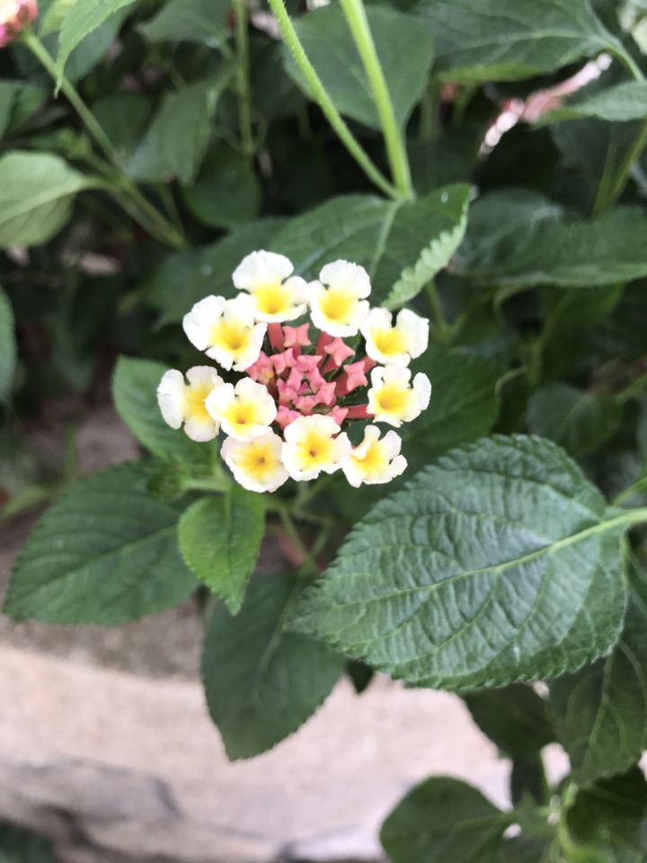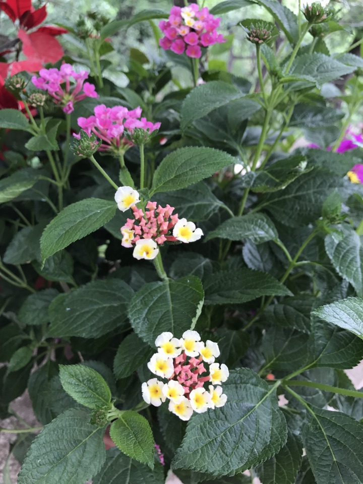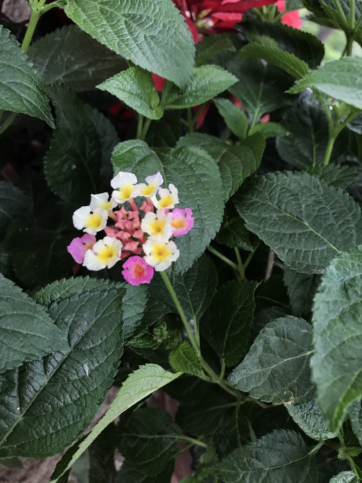 马缨丹,拉丁学名:(Lantana camara L.),别称:七姐妹、五色梅、五龙兰、如意草、五彩花、臭草、臭金凤、五雷丹、五色绣球、变色草,客家人也称之为绵鼻公花,花美丽等。原产美洲热带地区,为马鞭草科直立或蔓性常绿灌木。马缨丹为叶花两用观赏植物,花期长,全年均能开花,是一种较为理想的观花地被植物,最适期为春末至秋季。马缨丹花虽较小,但多数积聚在一起,似彩色小绒球镶嵌或点缀在绿叶之中,且花色美丽多彩,每朵花从花蕾期到花谢期可变换多种颜色。需要注意的是马缨丹虽可药用可叶及未成熟果实具有毒性,人畜误食会中毒。