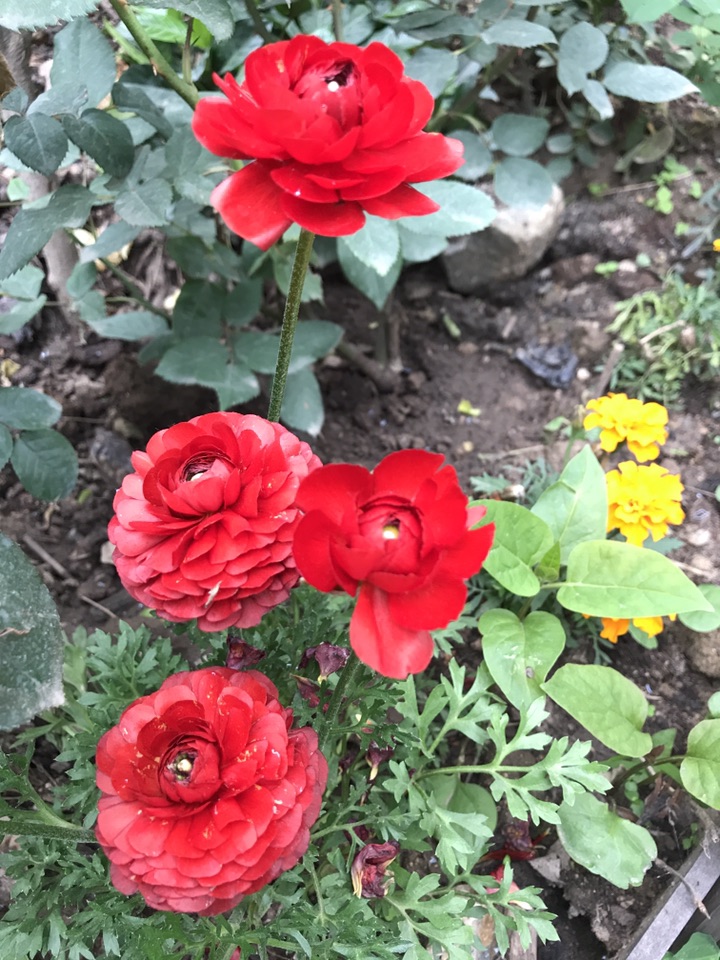 花毛茛(gèn),学名:Ranunculus asiaticus(L.)Lepech.,芹菜花、陆莲花、西洋牡丹为毛茛科、花毛茛属多年生草本花卉。花色丰富,多为重瓣或半重瓣,花型似牡丹花,但较小,花直径一般为8cm~1ocm;叶似芹菜的叶,故常被称为芹菜花。原产于欧洲东南部和亚洲西南部。感觉毛茛科、罂粟科的植物都是高颜值家族,但只可远观不可亵玩。据说它们的汁液大都有毒。所以不了解的童鞋们,看看就可以了,切记不要把有毒的汁液弄到手上或眼睛里!