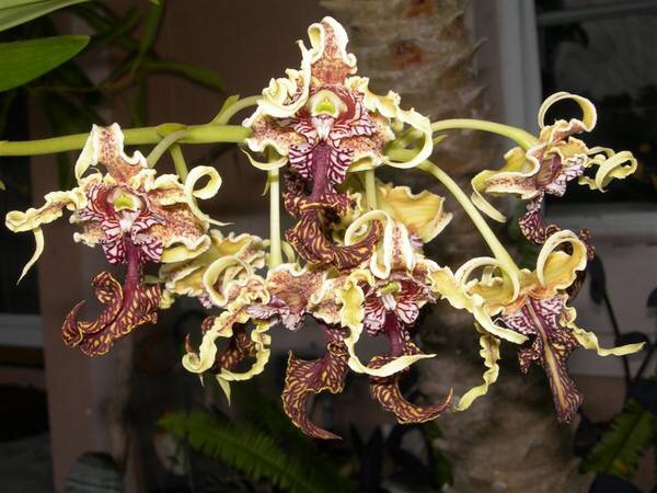 大鬼石斛有着大量不规则的斑纹和花瓣,看起来十分的奇特并且生长的十分杂乱,一般一枝花梗可以生长5-8朵花,大鬼石斛生长在热带雨林及红树林沼泽的树干上。