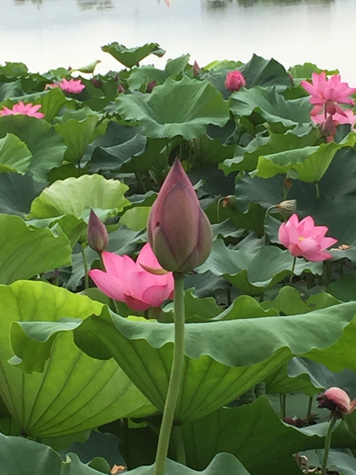 :我愿为莲, 在暮风中轻轻摇曳, 尘世的喧嚣对我而言, 只是过眼烟云。 我愿立于半亩方塘之中, 淹没于婷婷莲藕之间, 心如明镜。