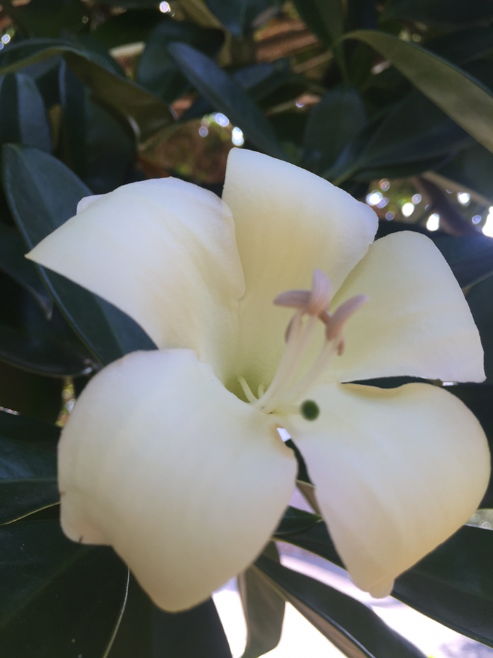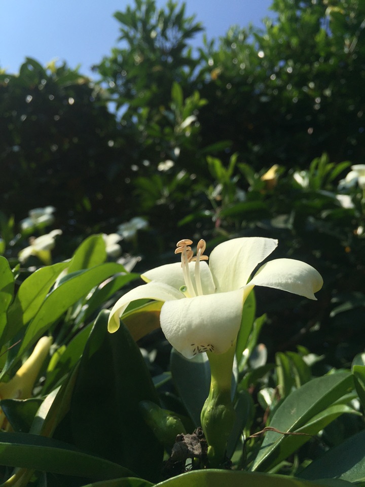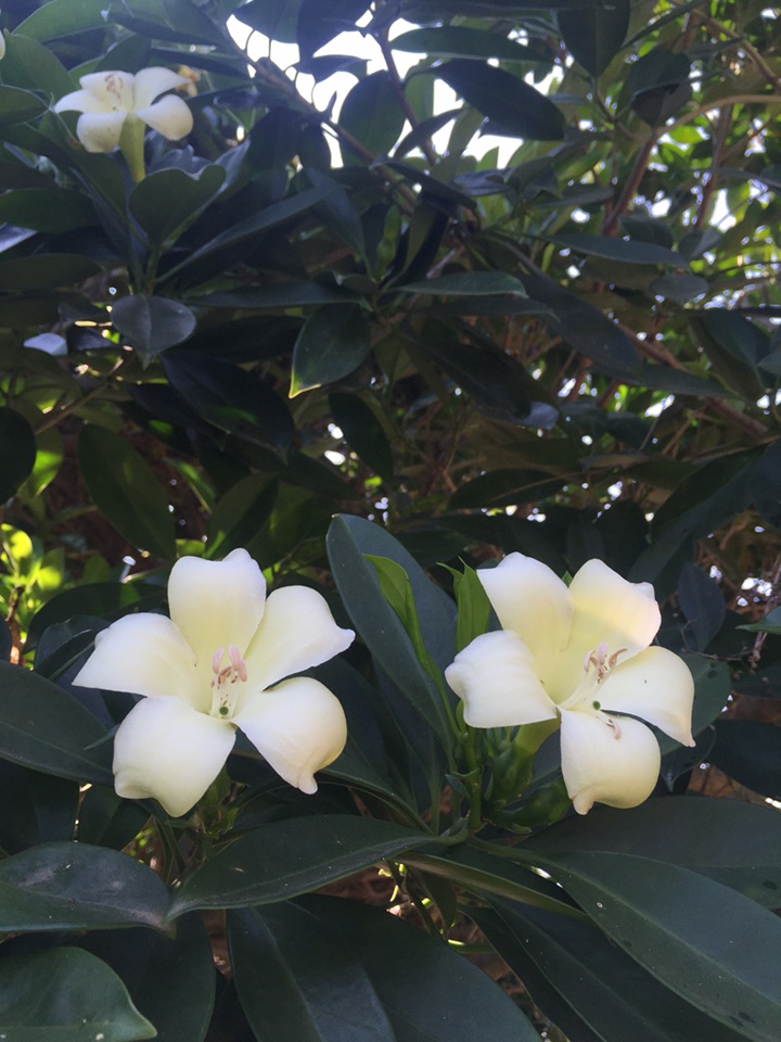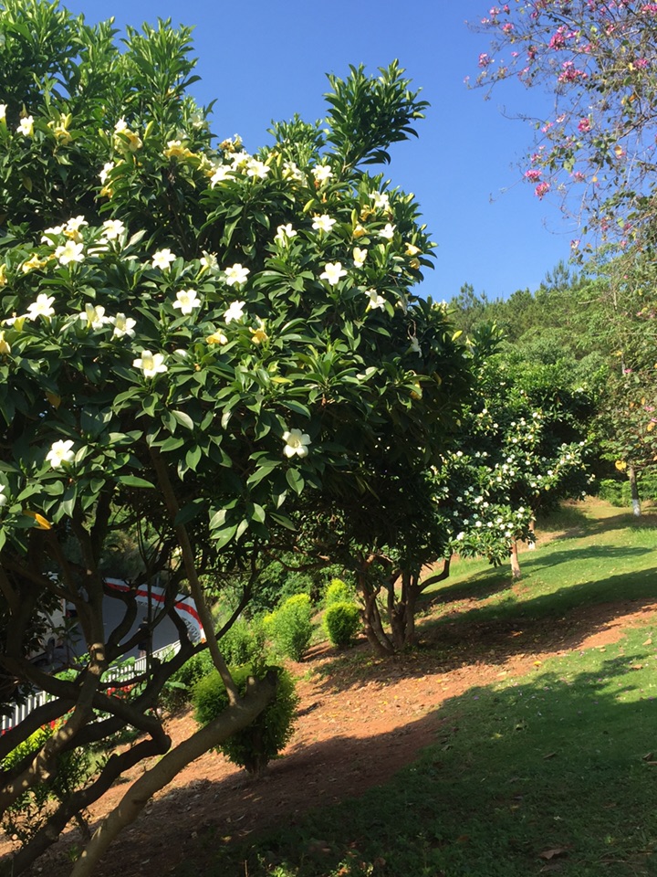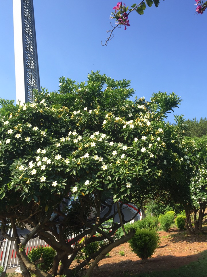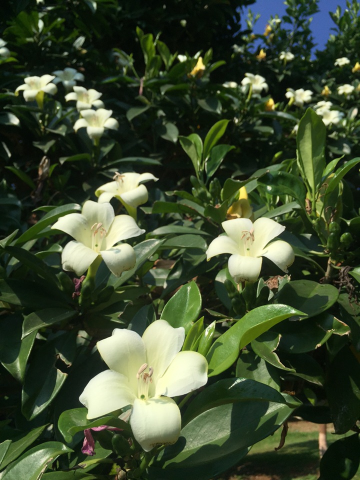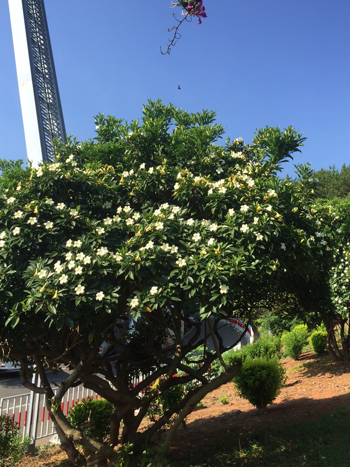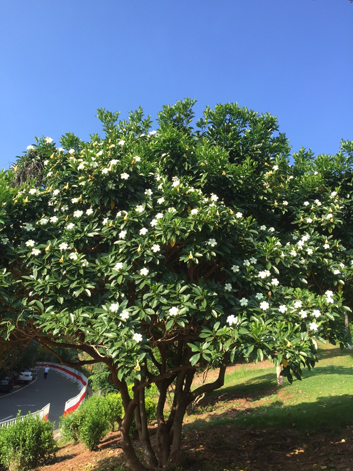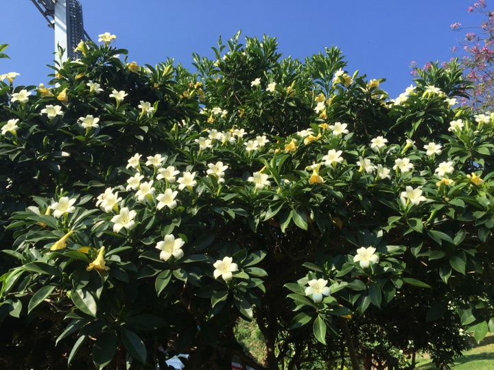 体育场旁边有两株非洲茉莉,长的郁郁葱葱,现在正是盛放的季节。