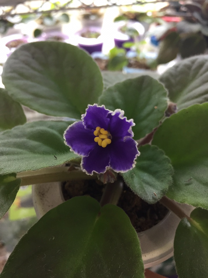今春的小苗 非洲堇初花,紫色白边,但也清新,其他颜色还没开,期待中!