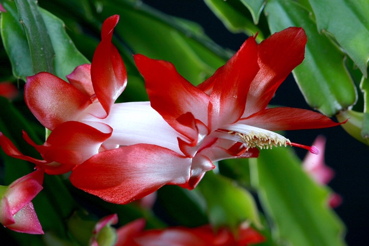 毛蟹爪莲体色鲜绿,茎多分枝,常成簇而悬垂,一根枝条由若干节组成,每节呈倒卵形或长椭圆形,数节连贯,似蟹爪,因而得名。其根紧紧攀附在巨树高枝或悬崖峭壁上,不为风雨所动摇。其花朵容貌清丽端正,超群而谦和,深受巴西人民喜爱。