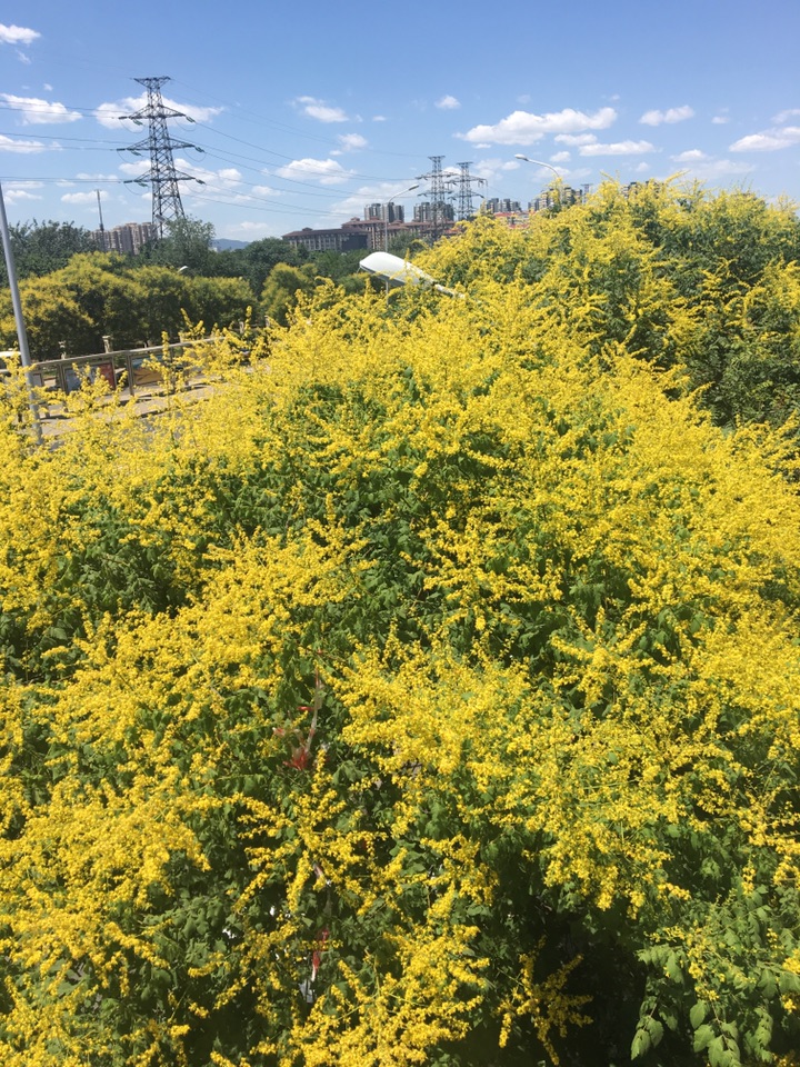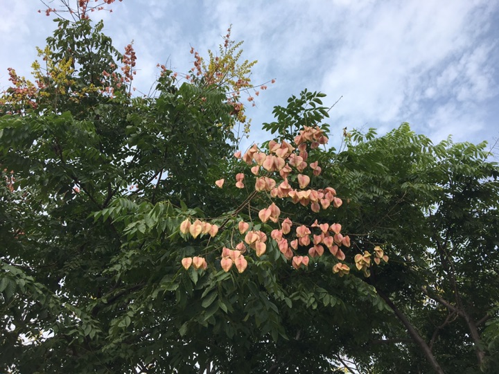 我好像是从去年才注意到栾树,那还是去以前的单位开会,会开完回家过天桥的时候发现了下面图中的花,很是惊诧于那花独特的漂亮,在那里住了将近七年我居然都没有观察到。