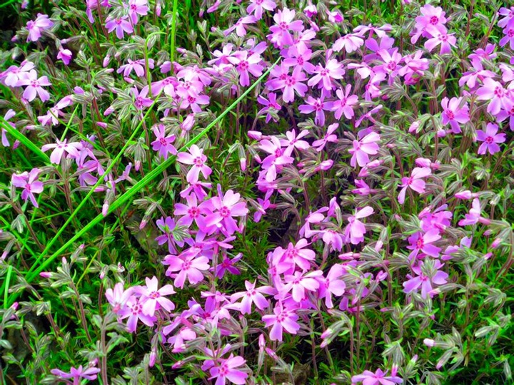针叶天蓝绣球(即丛生福禄考),花开时如粉红地毯,被誉为“开花的草坪”、“彩色地毯”,春秋两季开花,有记载表明,它在零下三十二度仍可露地越冬。